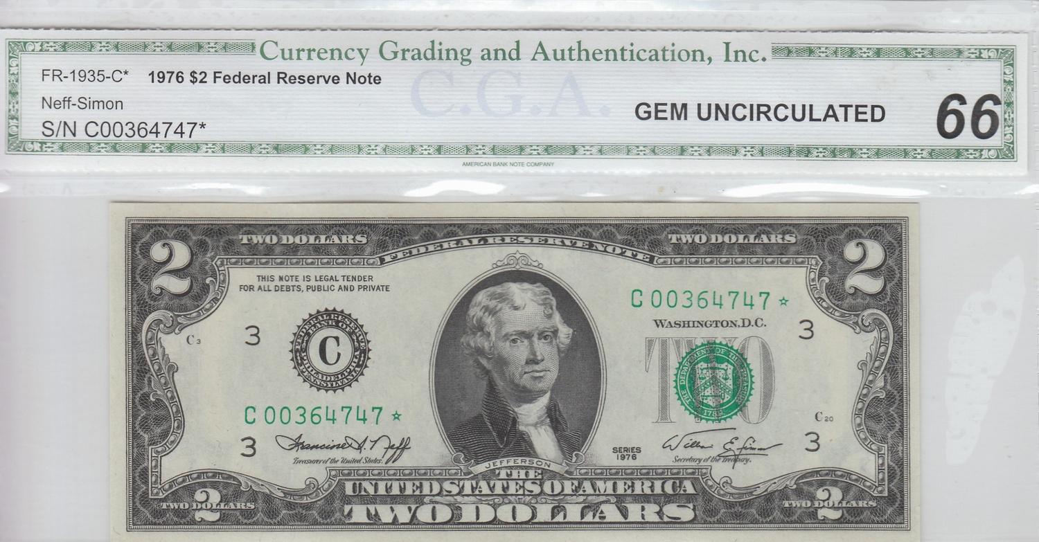 STAR FRN $2 1976 PHILADELPHIA GEM 66 CGA
