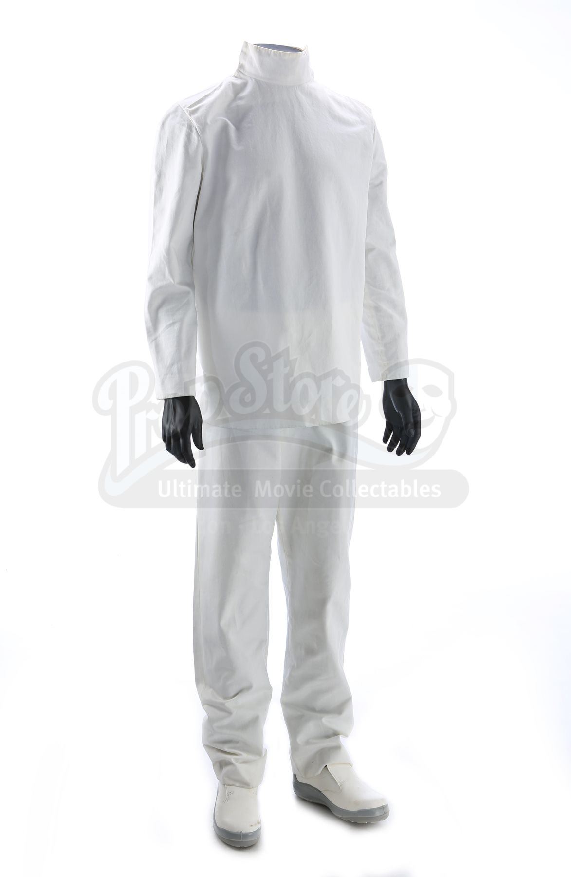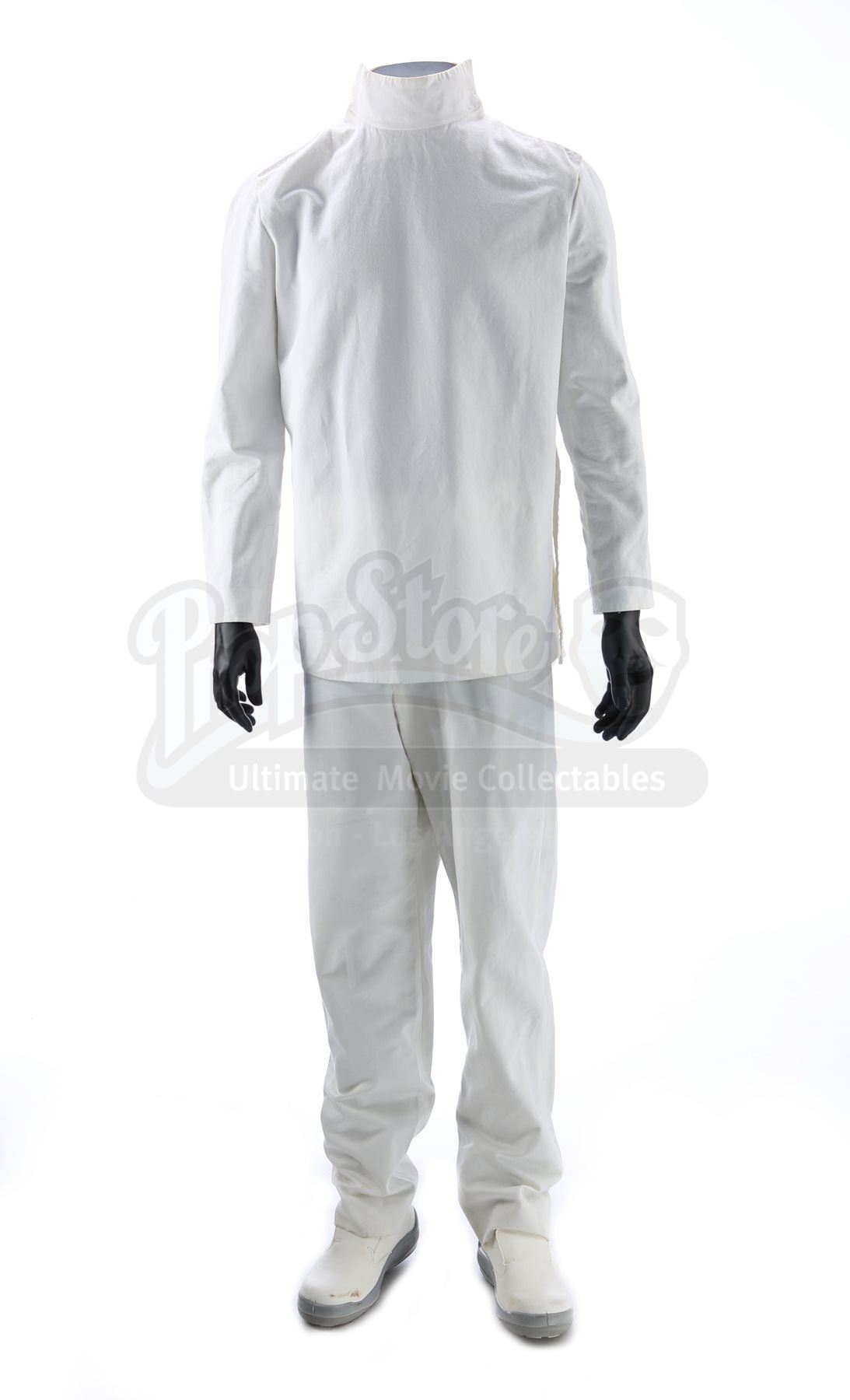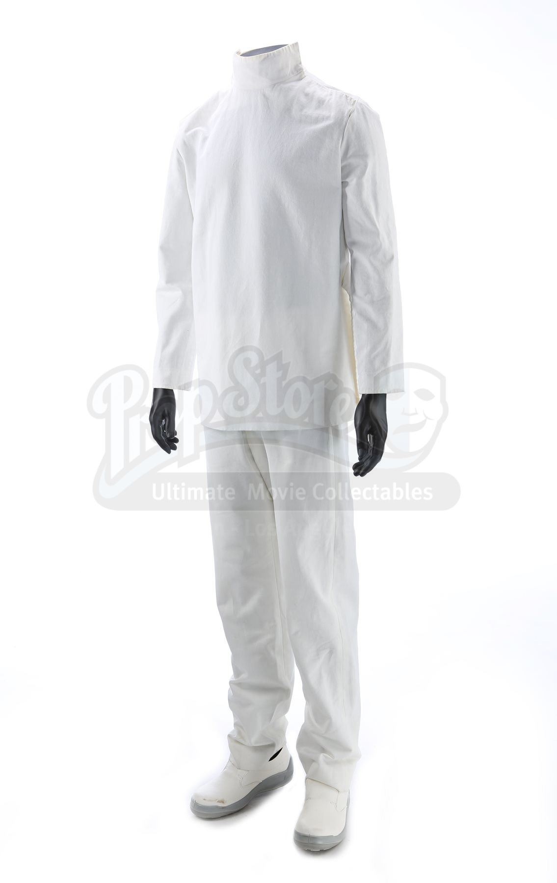 A men's Kelvin medical uniform from Star Trek. The USS Kelvin medical staff wore their uniforms when the Kelvin was attacked by Romulans The costume consists of a white tunic (approximate size medium), white pants (approximate size small) and white shoes (marked U.S. size 6).