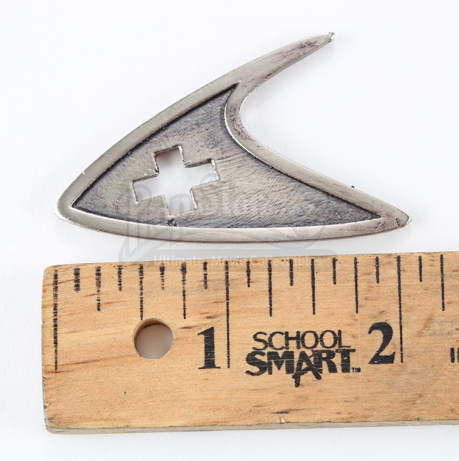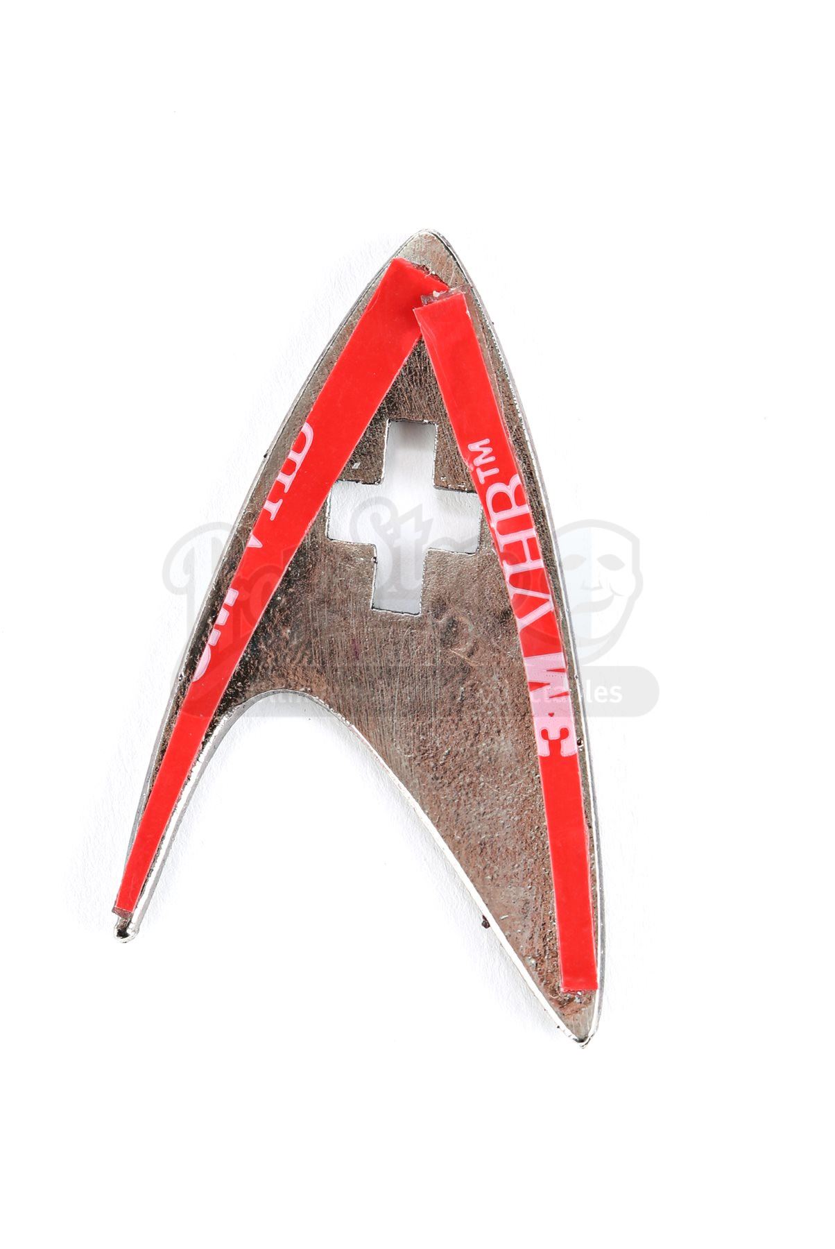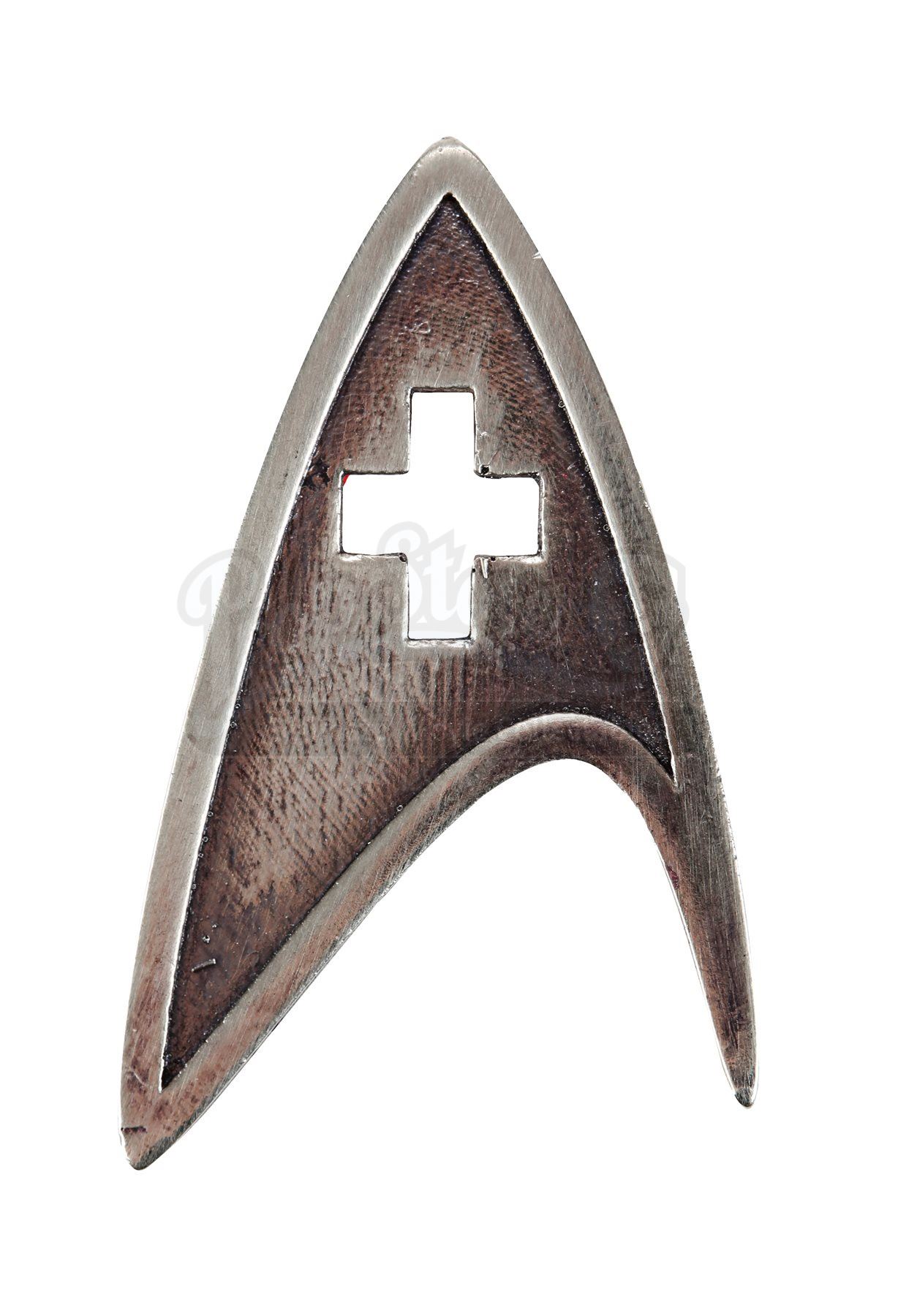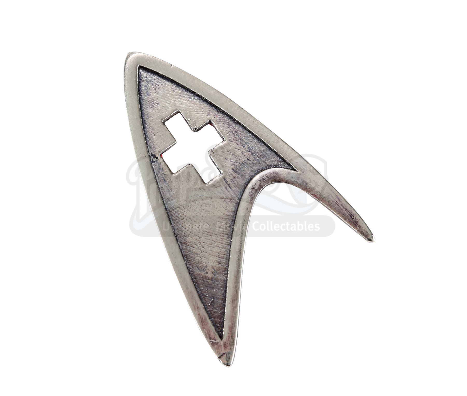 A Starfleet medical division insignia from Star Trek. Medical insignias were attached to members' uniforms within the medical field of Starfleet sciences, including Dr. 'Bones' McCoy. The insignia is made of resin with the medical variation of the sciences logo cut into the Starfleet emblem. It includes a strip of unused double-sided tape for attaching to the wearer's clothing.Dimensions: 1 ¼" x 2" x ¼" (3 cm x 5 cm x 1 cm) Estimate: $800 - 1000*Estimated sale price; sold without reserve.