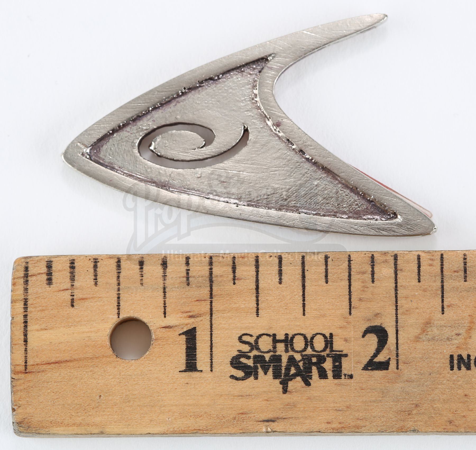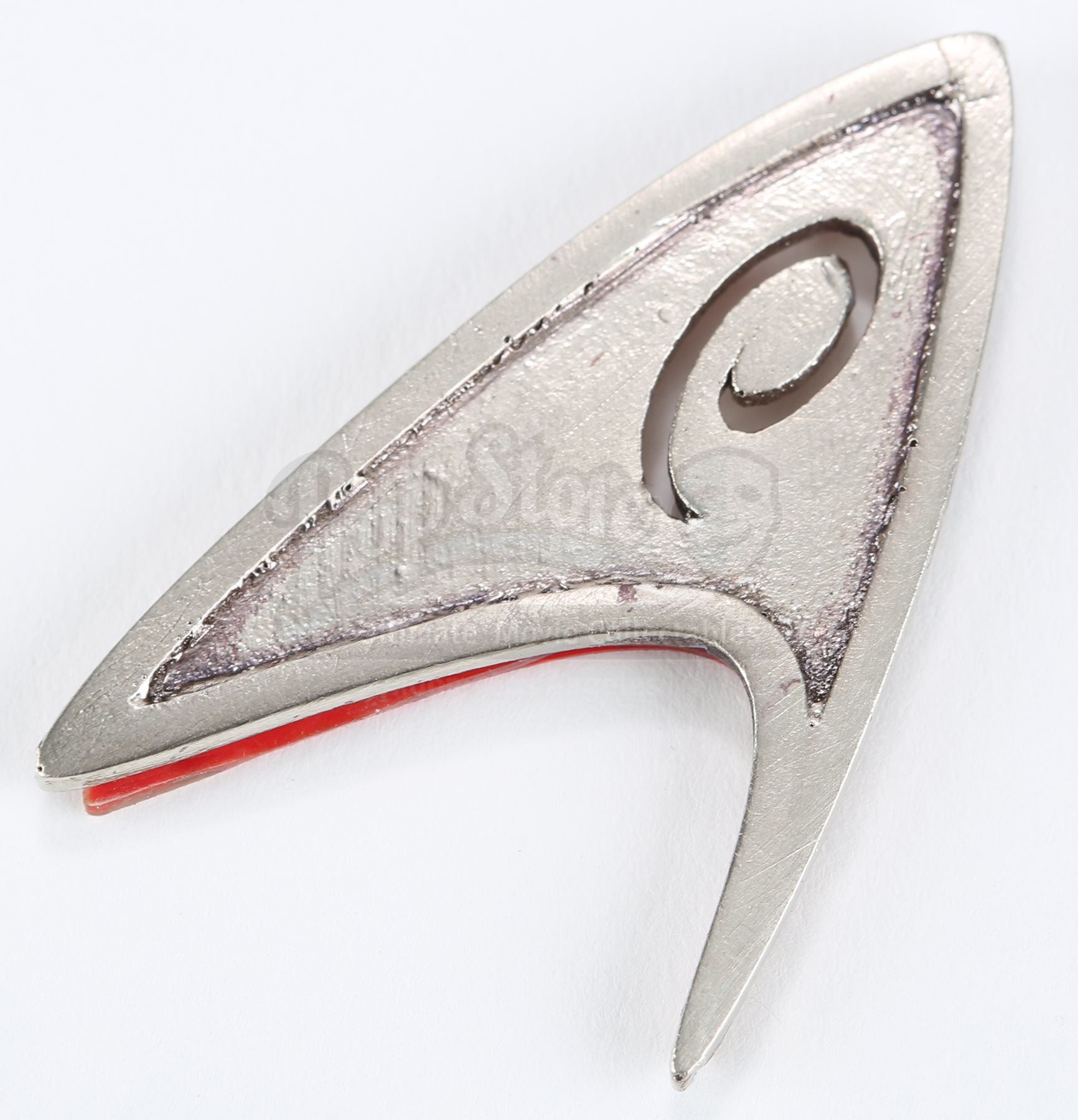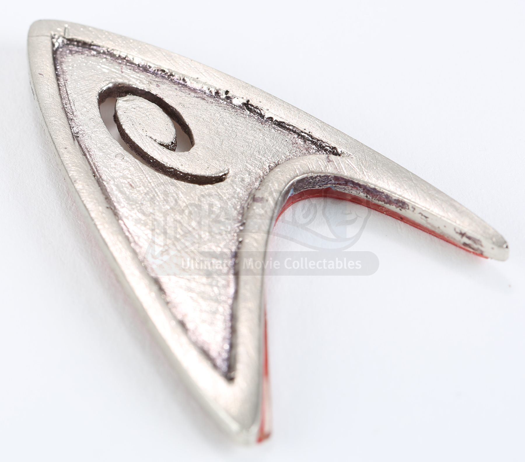 A Starfleet operations division insignia from Star Trek. Operations insignias were attached to members' uniforms within Starfleet operations, including Lt. Commander Scotty. The insignia is made of resin with the operations logo cut into the Starfleet emblem. It includes a strip of unused double-sided tape for attaching to the wearer's clothing. Dimensions: 1 ¼" x 2" x ¼" (3 cm x 5 cm x 0.5 cm)Estimate: $1000 - 1500*Estimated sale price; sold without reserve.