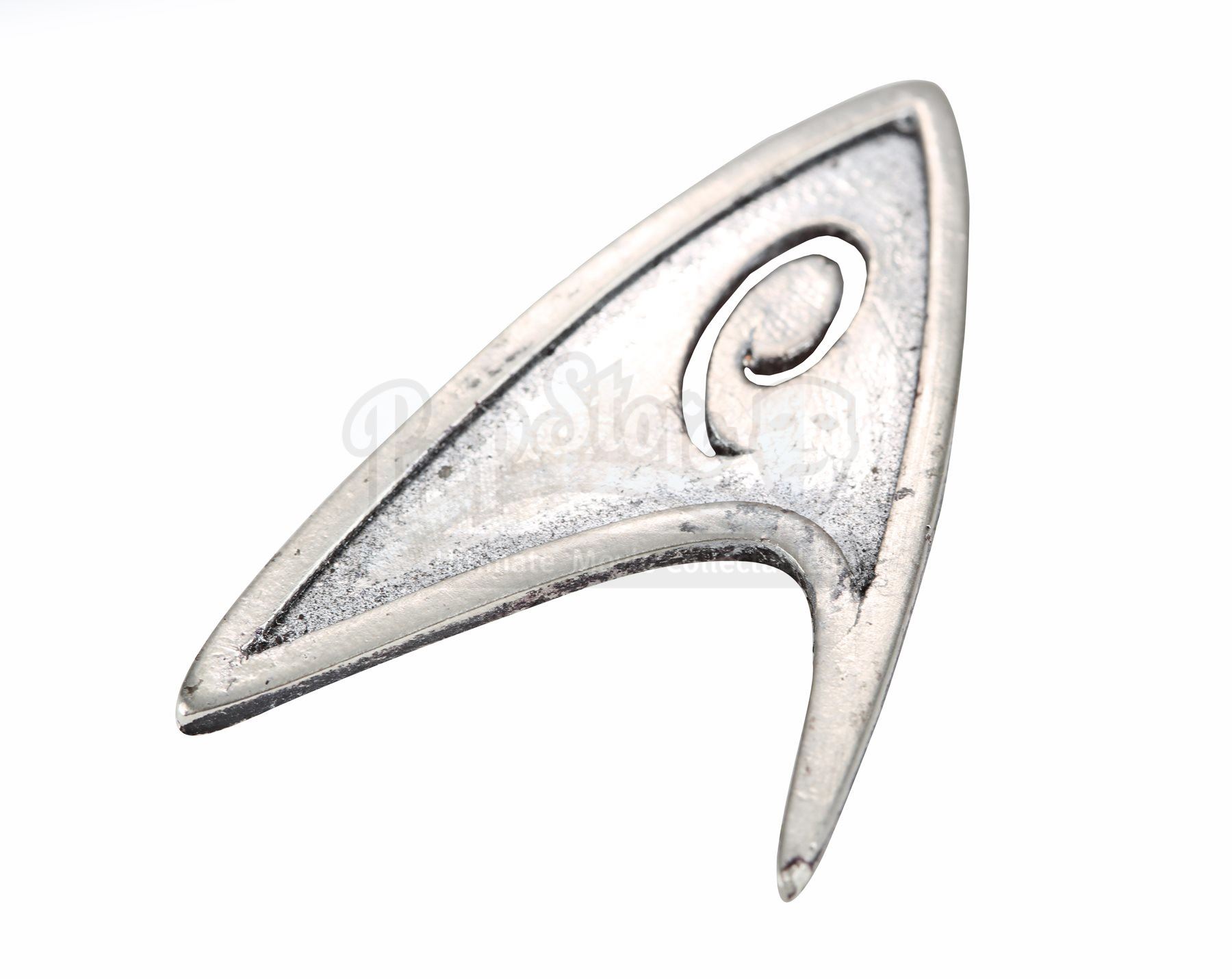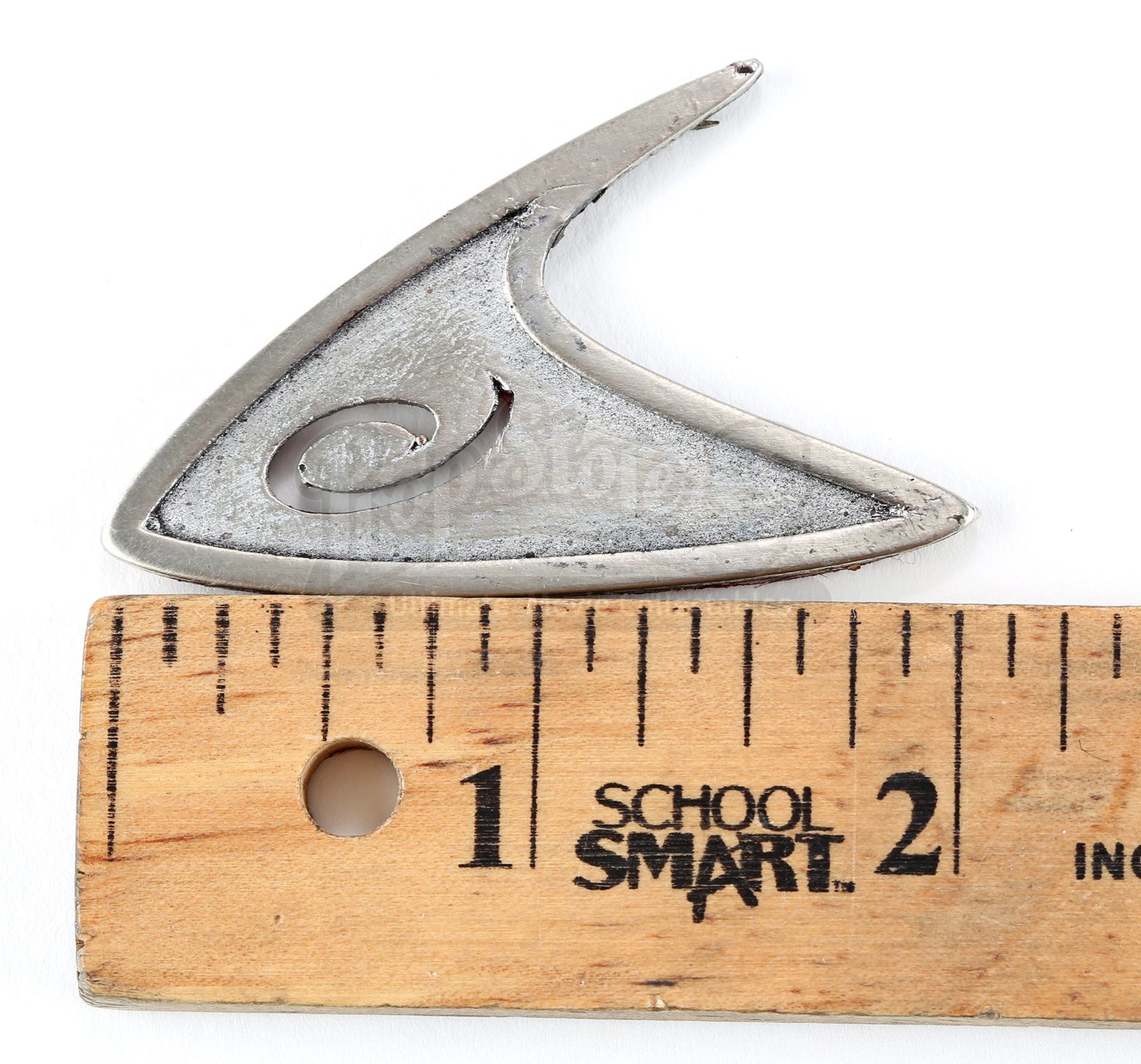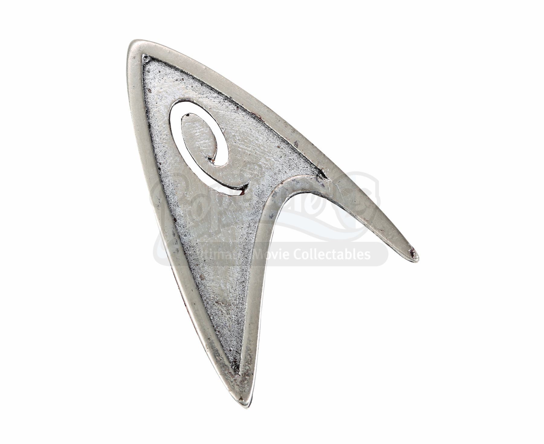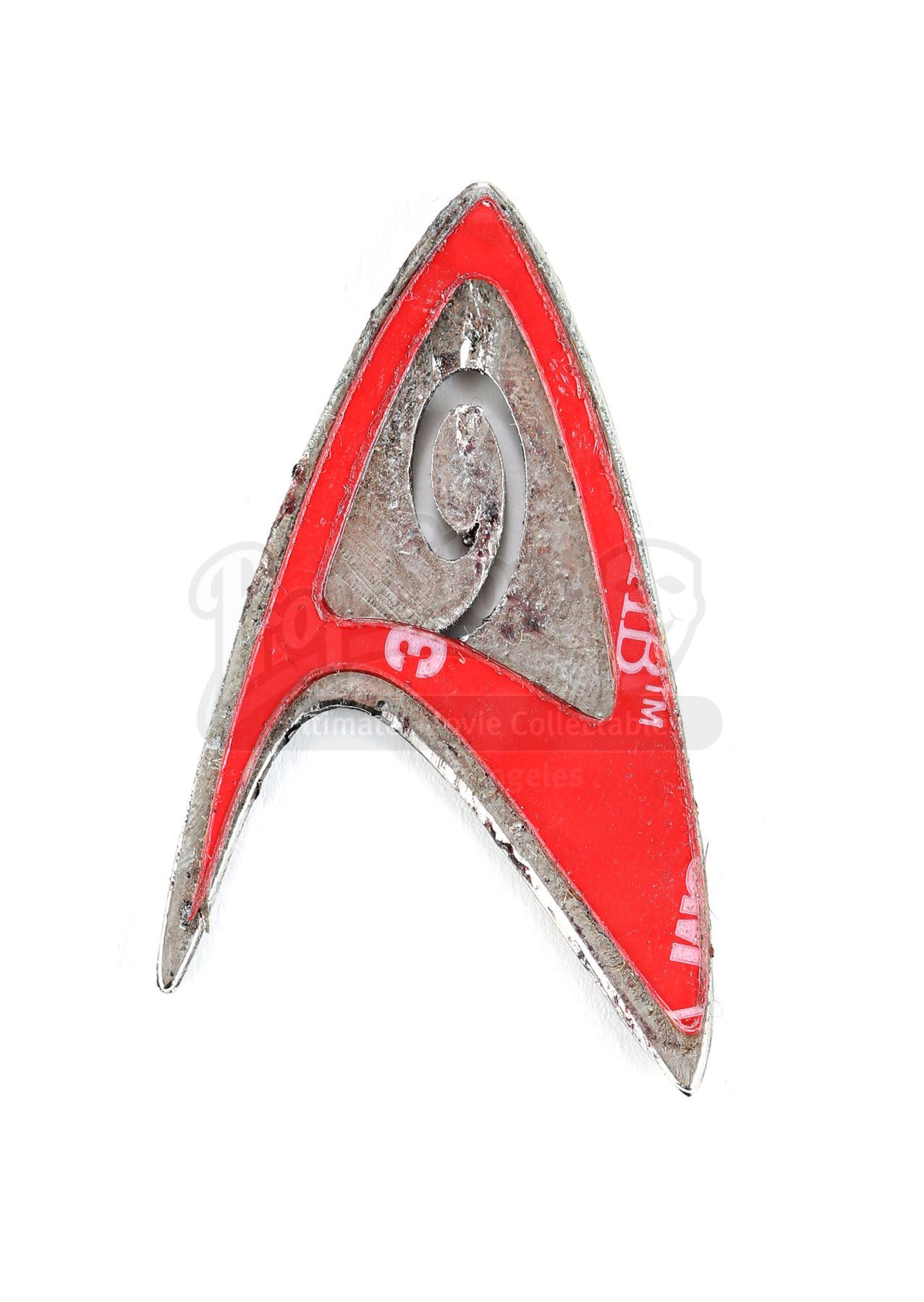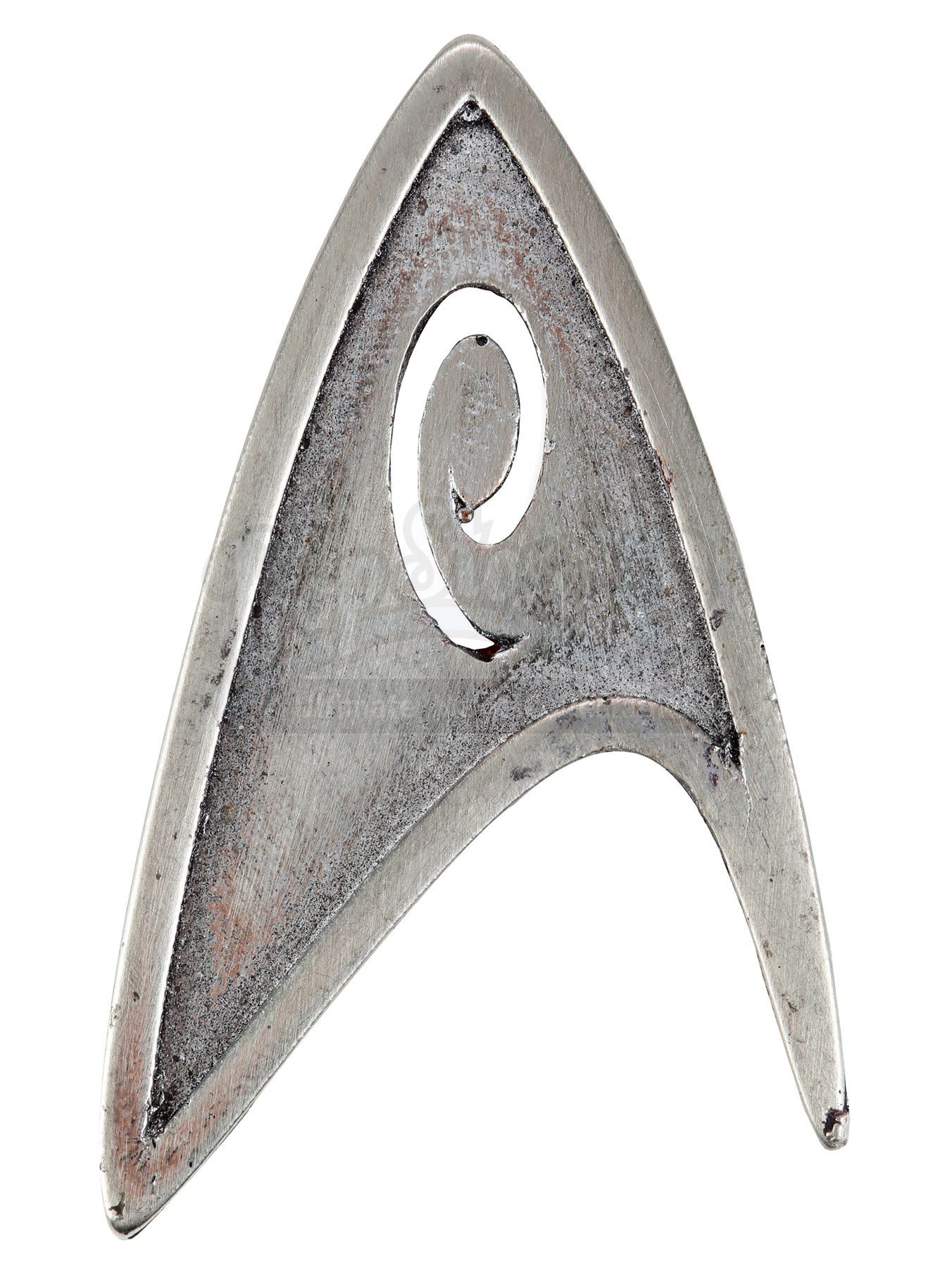 A Starfleet operations division insignia from Star Trek. Operations insignias were attached to members' uniforms within Starfleet operations, including Lt. Commander Scotty. The insignia is made of resin with the operations logo cut into the Starfleet emblem. It includes a strip of unused double-sided tape for attaching to the wearer's clothing. Dimensions: 1 ¼" x 2" x ¼" (3 cm x 5 cm x 0.5 cm)