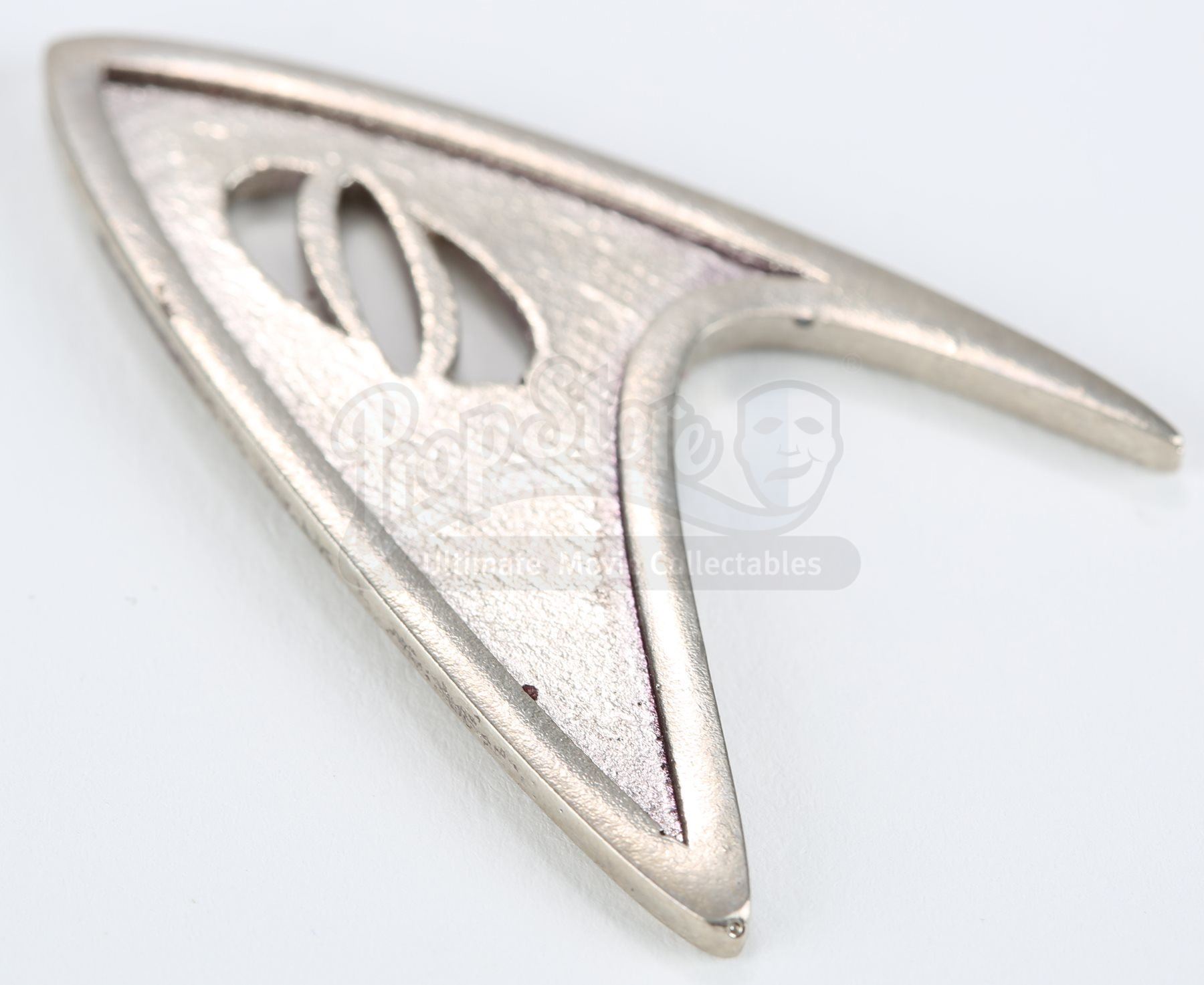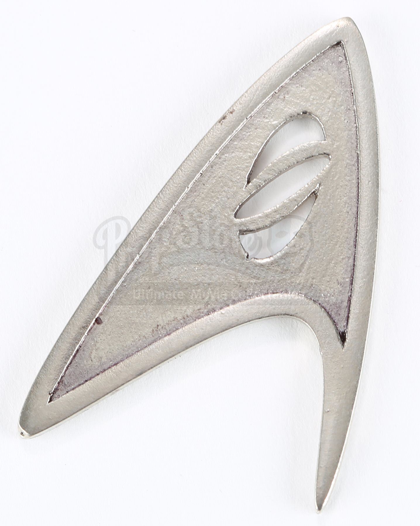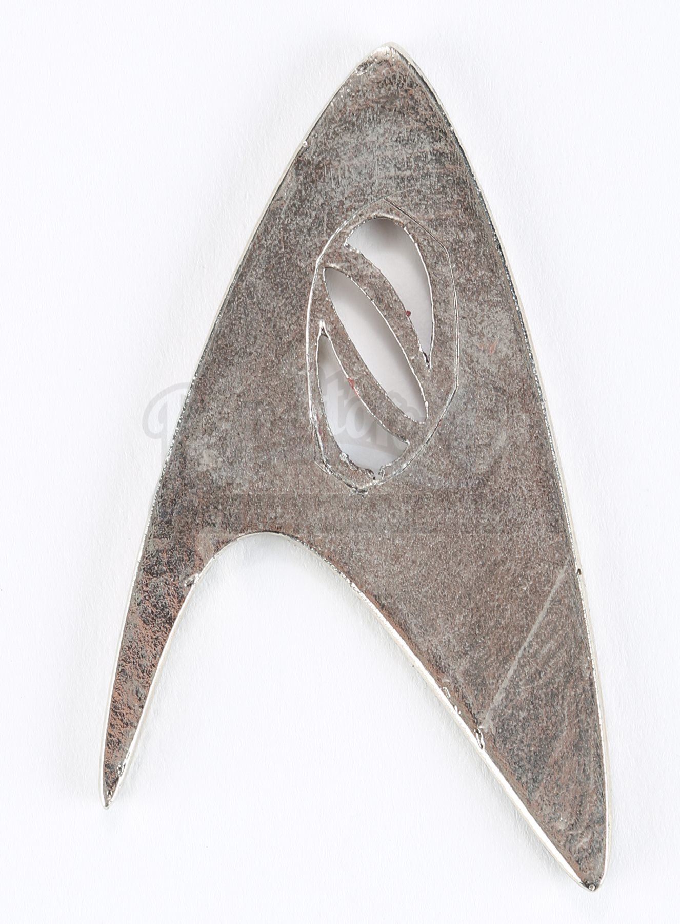 A Starfleet sciences division insignia from Star Trek. Sciences insignias were attached to members' uniforms within Starfleet sciences, including that of Mr. Spock. The insignia is made of resin with the sciences logo cut into the Starfleet emblem. Dimensions: 1 ¼" x 2" x ¼" (3 cm x 5 cm x 0.5 cm)Estimate: $1000 - 1500*Estimated sale price; sold without reserve.