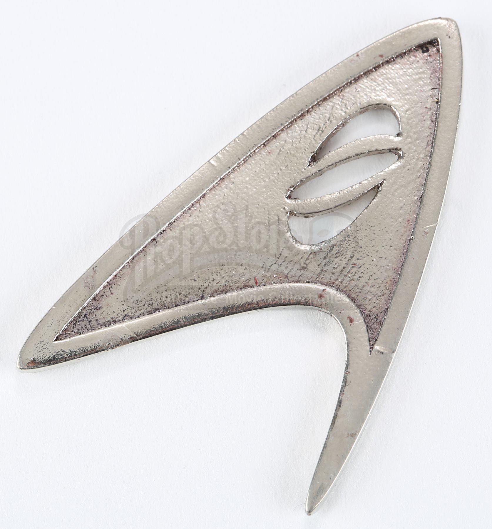 The insignia is made of resin with the sciences logo cut into the Starfleet emblem. Dimensions: 1 ¼" x 2" x ¼" (3 cm x 5 cm x 0.5 cm)