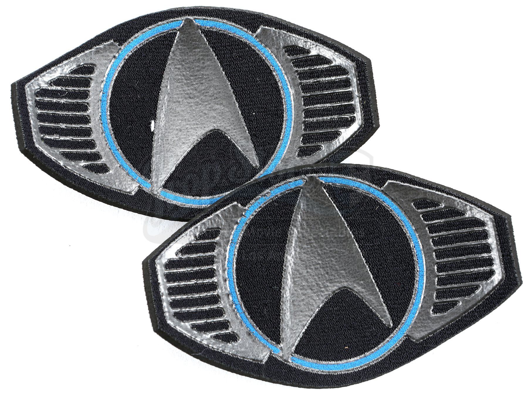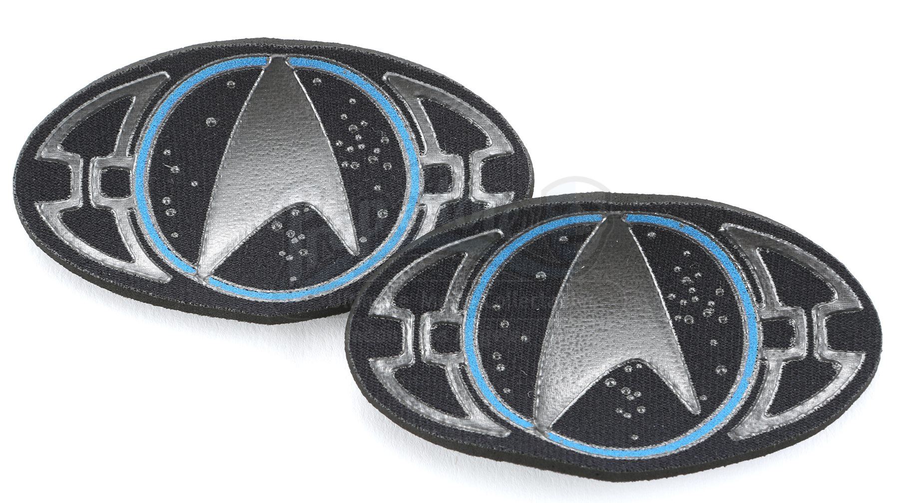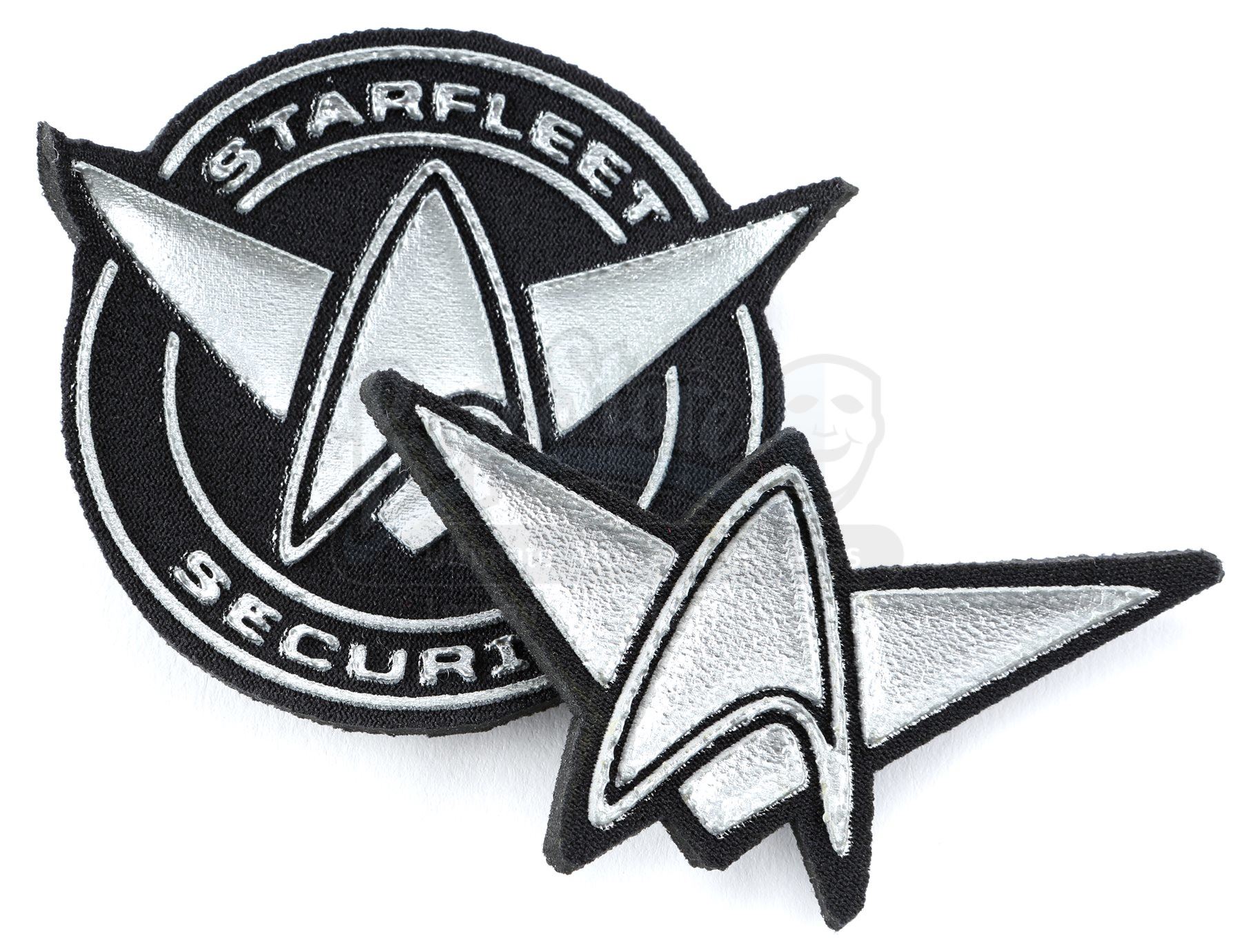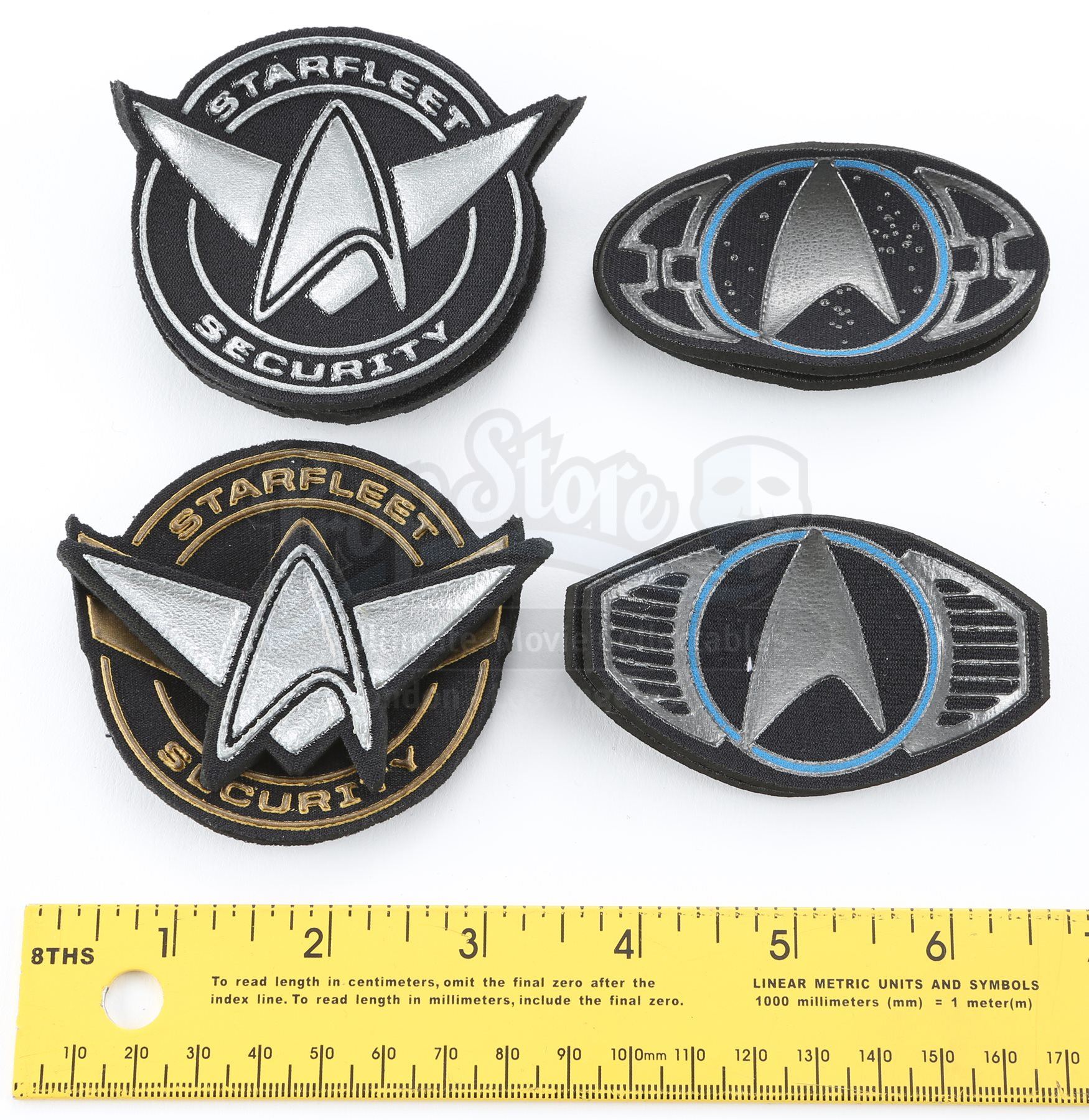 A Starfleet patch set from Star Trek and Star Trek Into Darkness. Patches were attached to various Starfleet members' uniforms featured throughout the series. Each patch is made of foam. The lot includes two silver security patches, a gold security patch, two pilot cap patches, two loader cap patches and a trimmed silver security insignia. Dimensions: 3 ½" x 3" x 1 ½" (9 cm x 8 cm x 4 cm)Estimate: $1000 - 1500*Estimated sale price; sold without reserve.