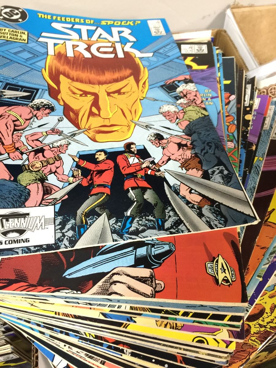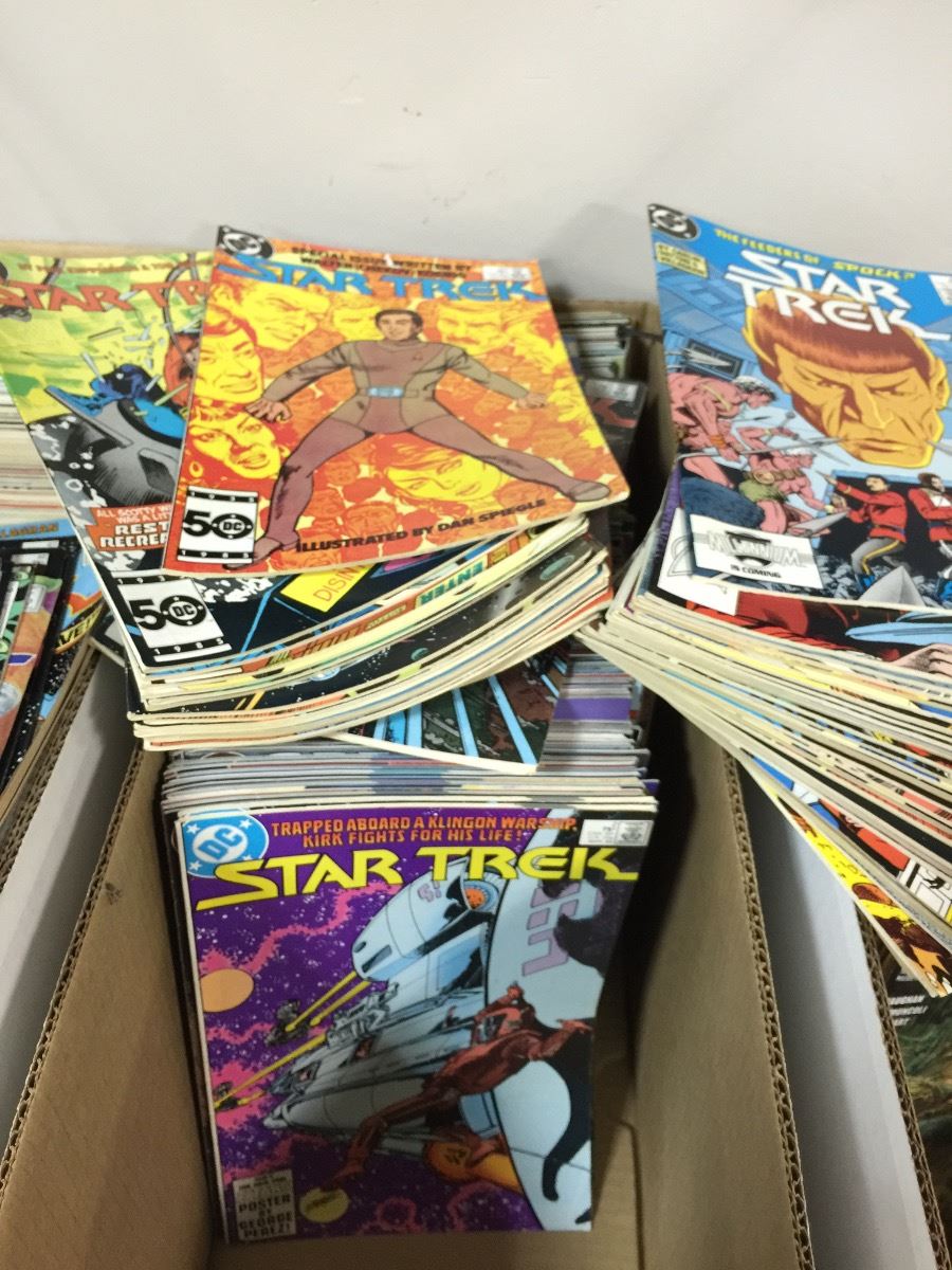 STAR TREK 3 COMPLETE DC SERIES (1984-96) INCLUDES STAR TREK #1-56 (1984-88) & STAR TREK #1-80 (1989-96) & STAR TREK: THE NEXT GENERATION #1-80 (1989-95) & ANNUALS OVER 200 BOOKS TOTAL. MIXED GRADES MID TO HIGH, HIGH MID AVG.