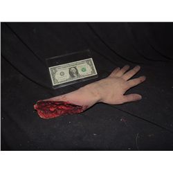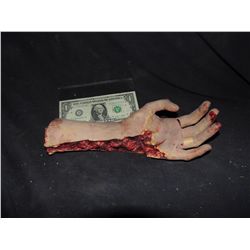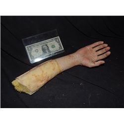 SEVERED TORN OFF ARM WITH GORE AT STUMP. EXCELLENT HALLOWEEN, HAUNT, OR INDY FILM PROPS!