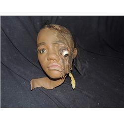 This is a well made severed silicone head with gore at stump and skull cap cut off.