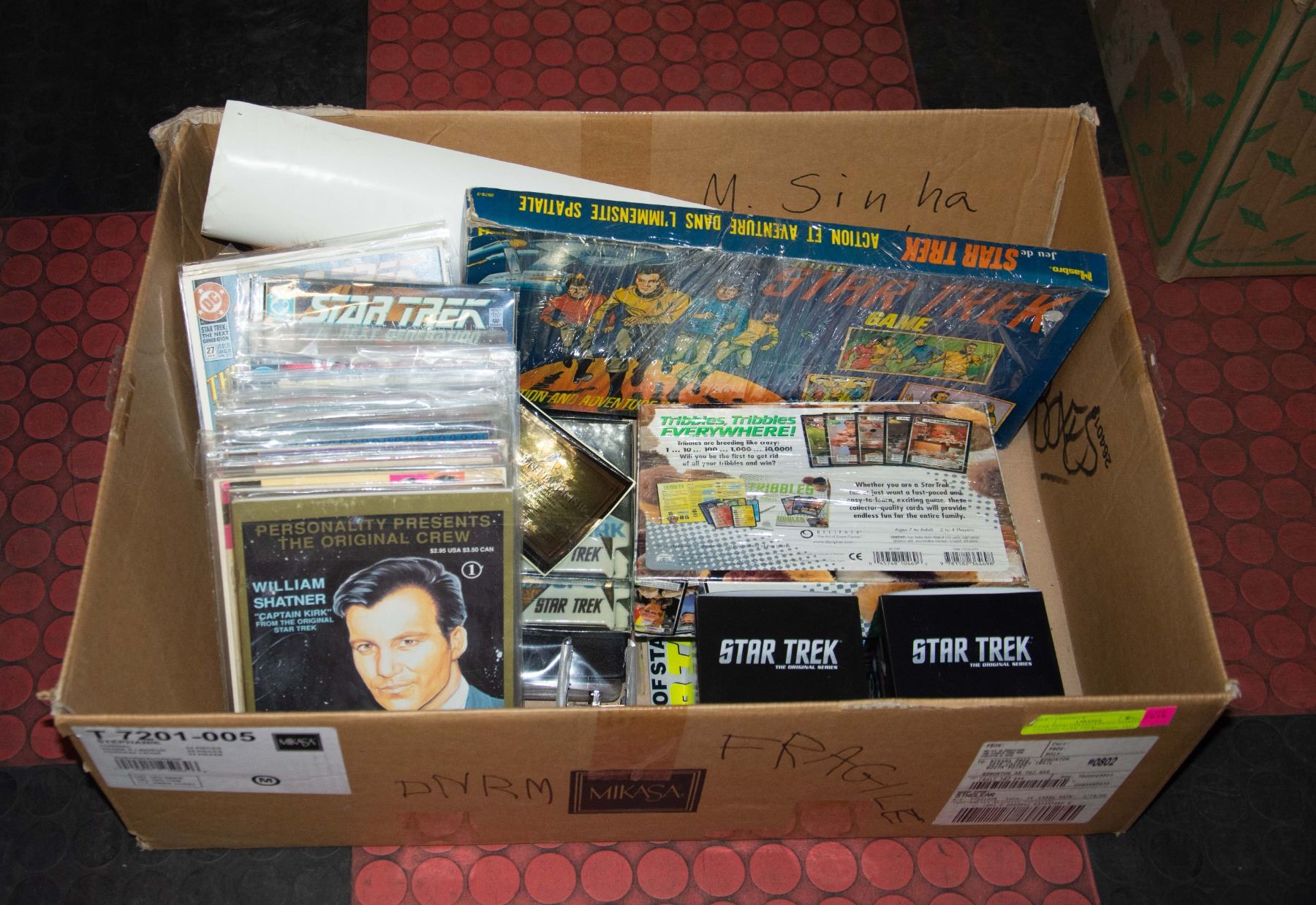 BOARD GAME (1974); TRIBBLES CARD GAME; TRIBBLE PLUSH TOY; SPOCK Q-POP TREKKIES FIGURE; KIRK Q-POP TREKKIES FIGURE; STAR TREK 25TH ANNIVERSARY SPECIAL MAGAZINE; BINDER OF STAR TREK: THE NEXT GENERATION (1991) AND STAR TREK: ORIGINAL SERIES (1991) COLL **ALL ITEMS MUST BE REMOVED BY 5PM SATURDAY, FEBRUARY 15TH 2025. ALL REMAINING ITEMS WILL BE SUBJECT TO A $6.00 PER DAY STORAGE CHARGE. ANY ITEMS REMAINING AFTER MONDAY, MARCH 10TH 2025 WILL BE CONSIDERED FORFEITED. NO REFUNDS WILL BE ISSUED FOR FORFEITED ITEMS. TO SCHEDULE A PICK UP APPOINTMENT CLICK HERE
