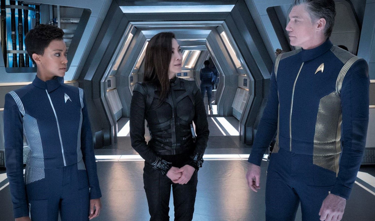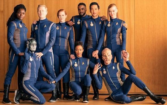 STAR TREK DISCOVERY GOLD CAPTAIN UNIFORM FABRIC WITH GLYPHS