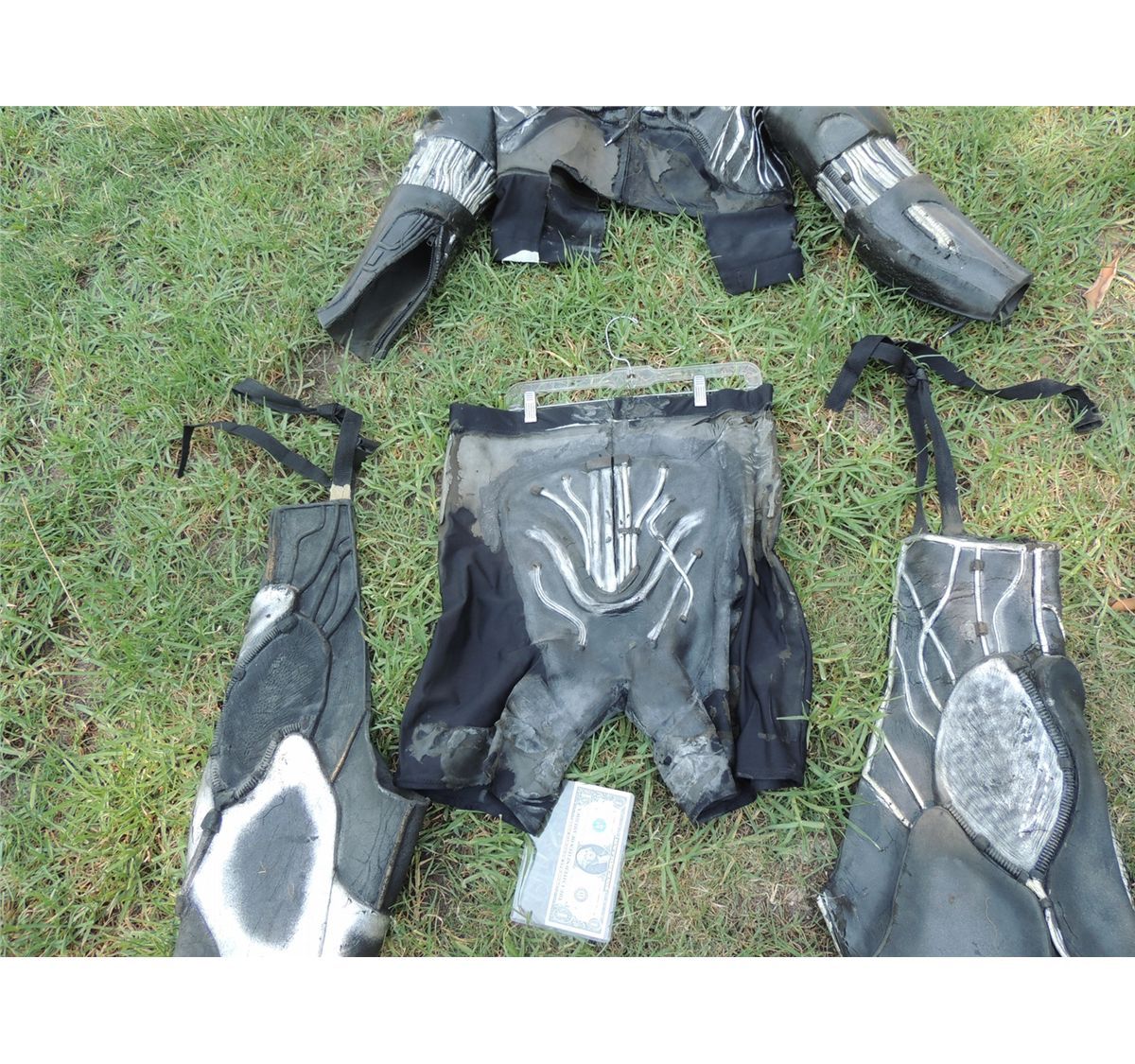 Each suit is made of 4 pieces. A top, a pair of pants, and a right and left leg.
