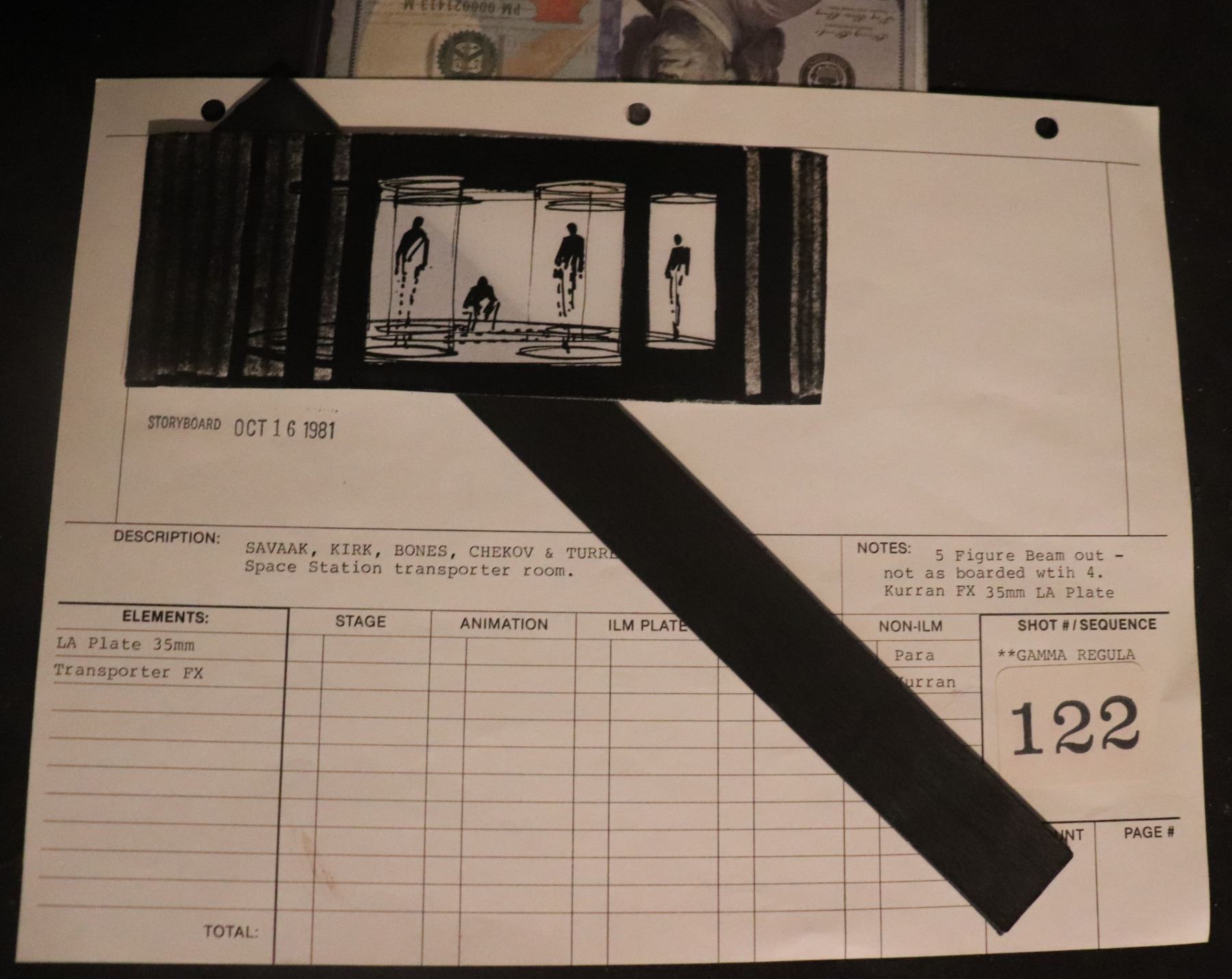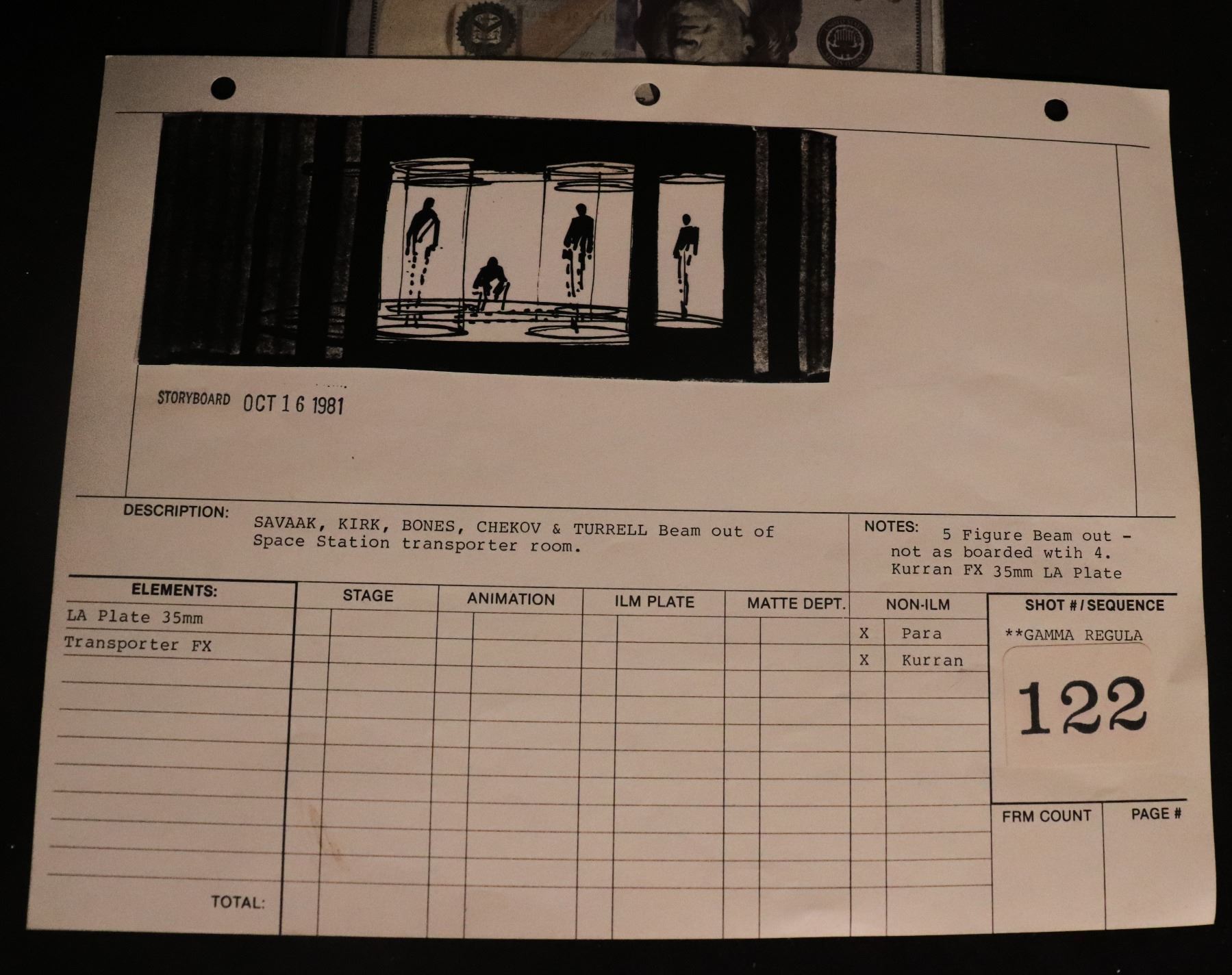 STAR TREK II THE WRATH OF KAHN STORYBOARD WITH TRANSPORTER ROOM SC 122 DATED OCTOBER 16, 1981!