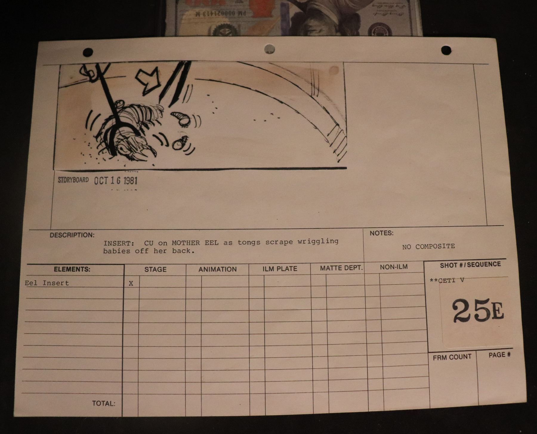 STAR TREK II THE WRATH OF KAHN STORYBOARD WITH  CETI EEL INSERT SC 25E DATED OCTOBER 16, 1981!
