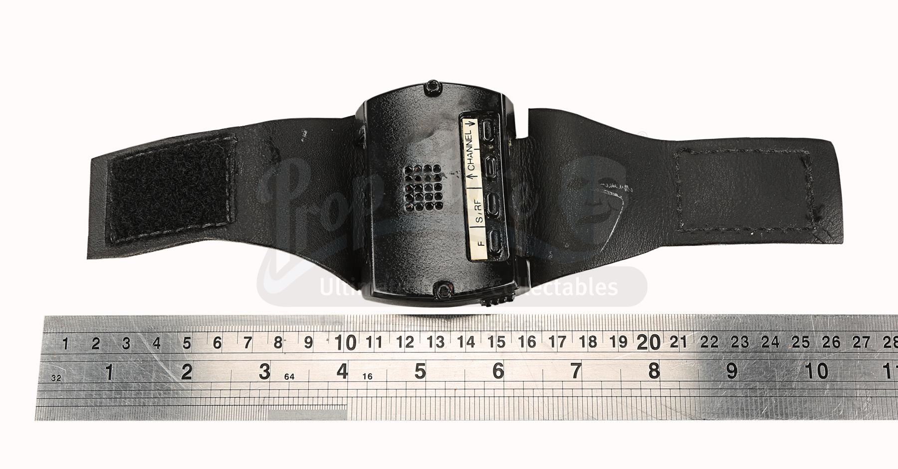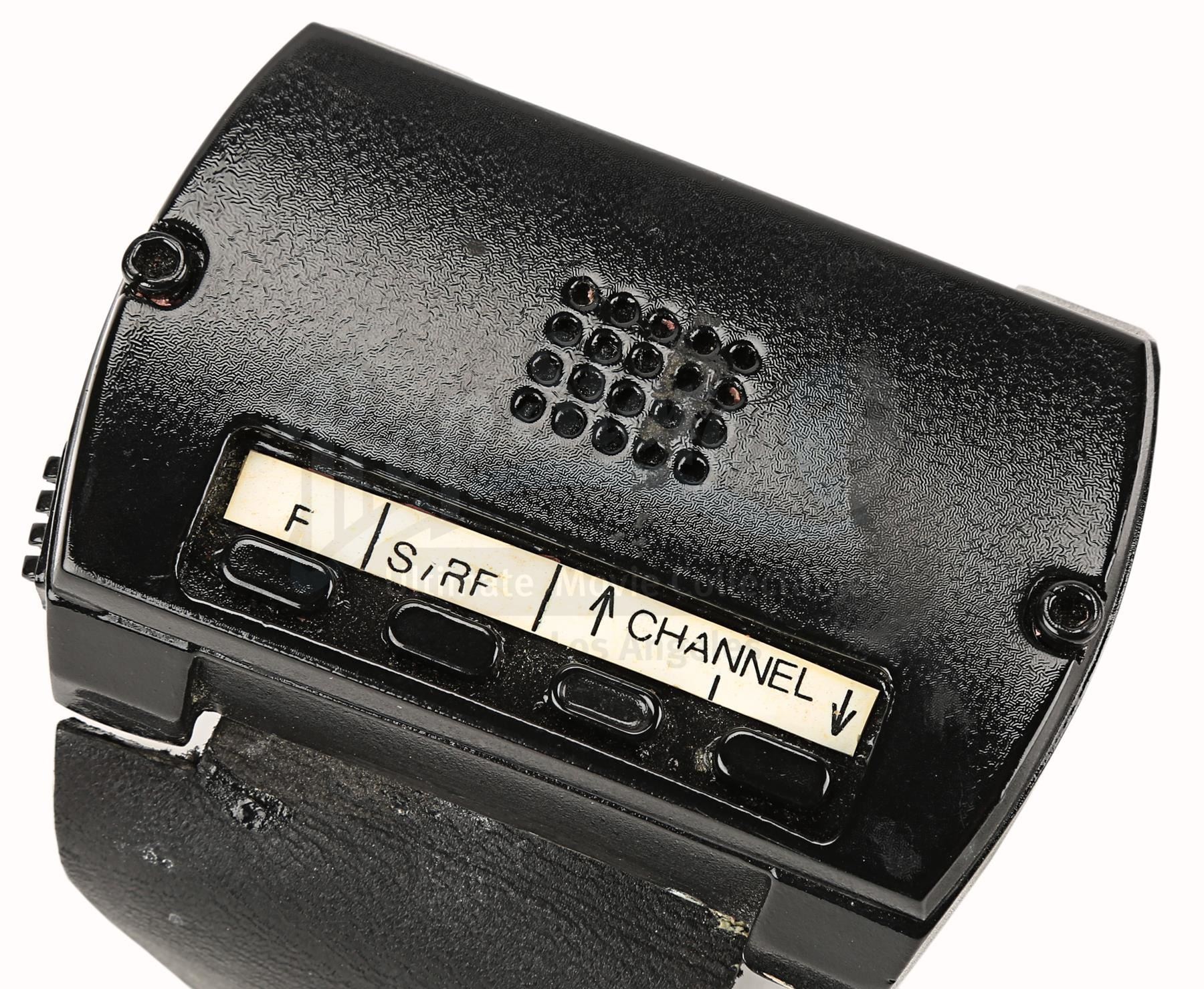 A wrist communicator from Nicholas Meyer's sci-fi sequel Star Trek II: The Wrath of Khan. Wrist communicators were worn by members of Starfleet. Chekov (Walter Koenig) and Captain Terrell (Paul Winfield) used communicators to talk to Khan (Ricardo Montalbán) after they were forced to betray Kirk (William Shatner) on Regula.