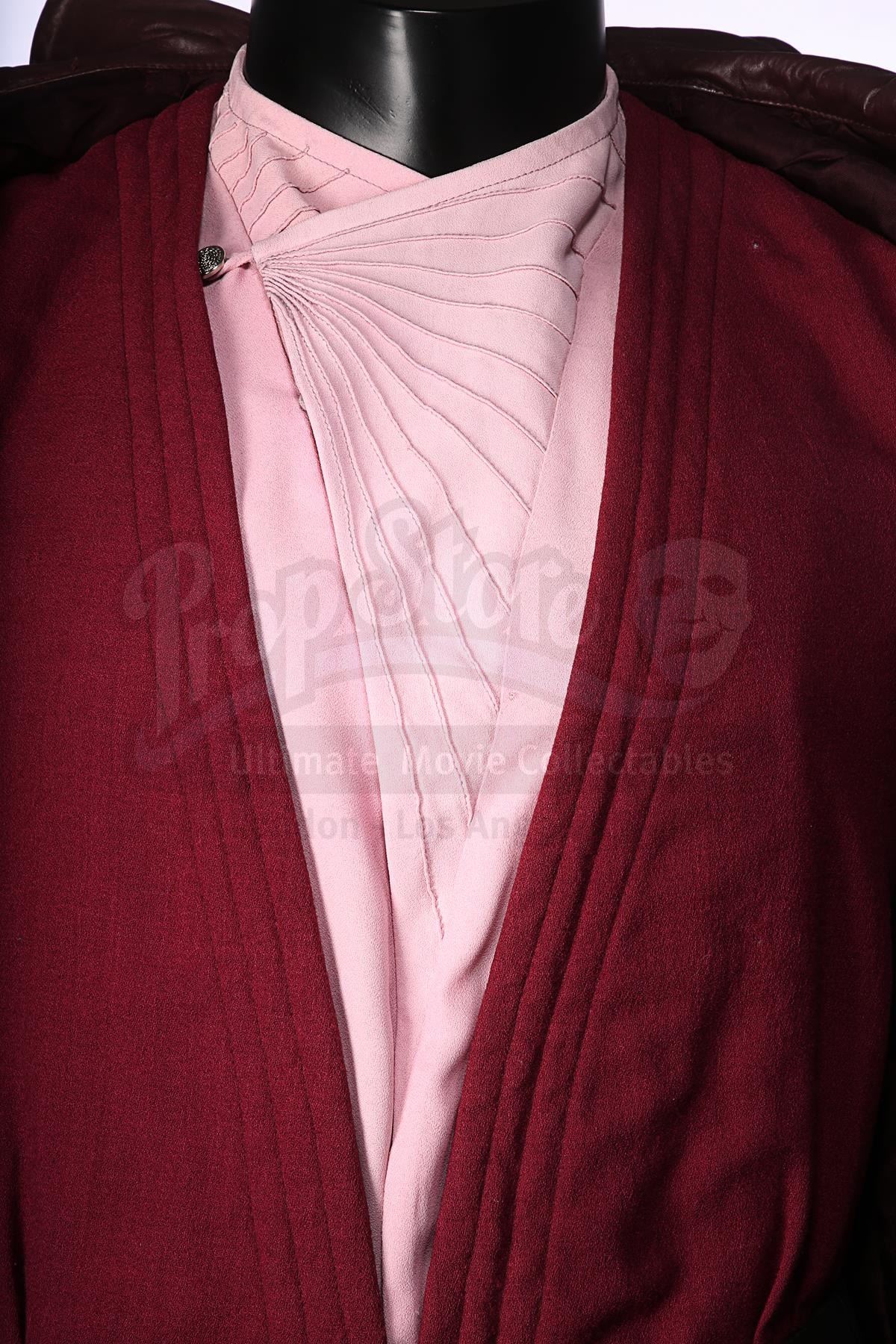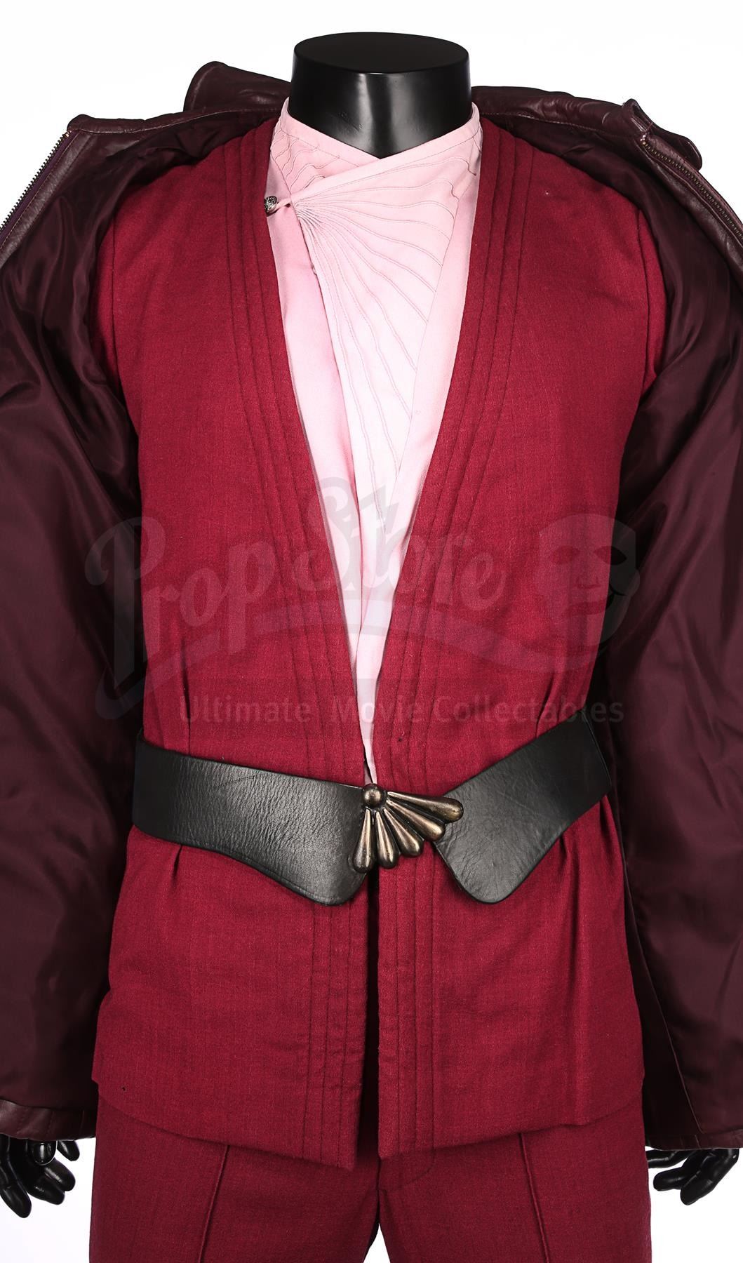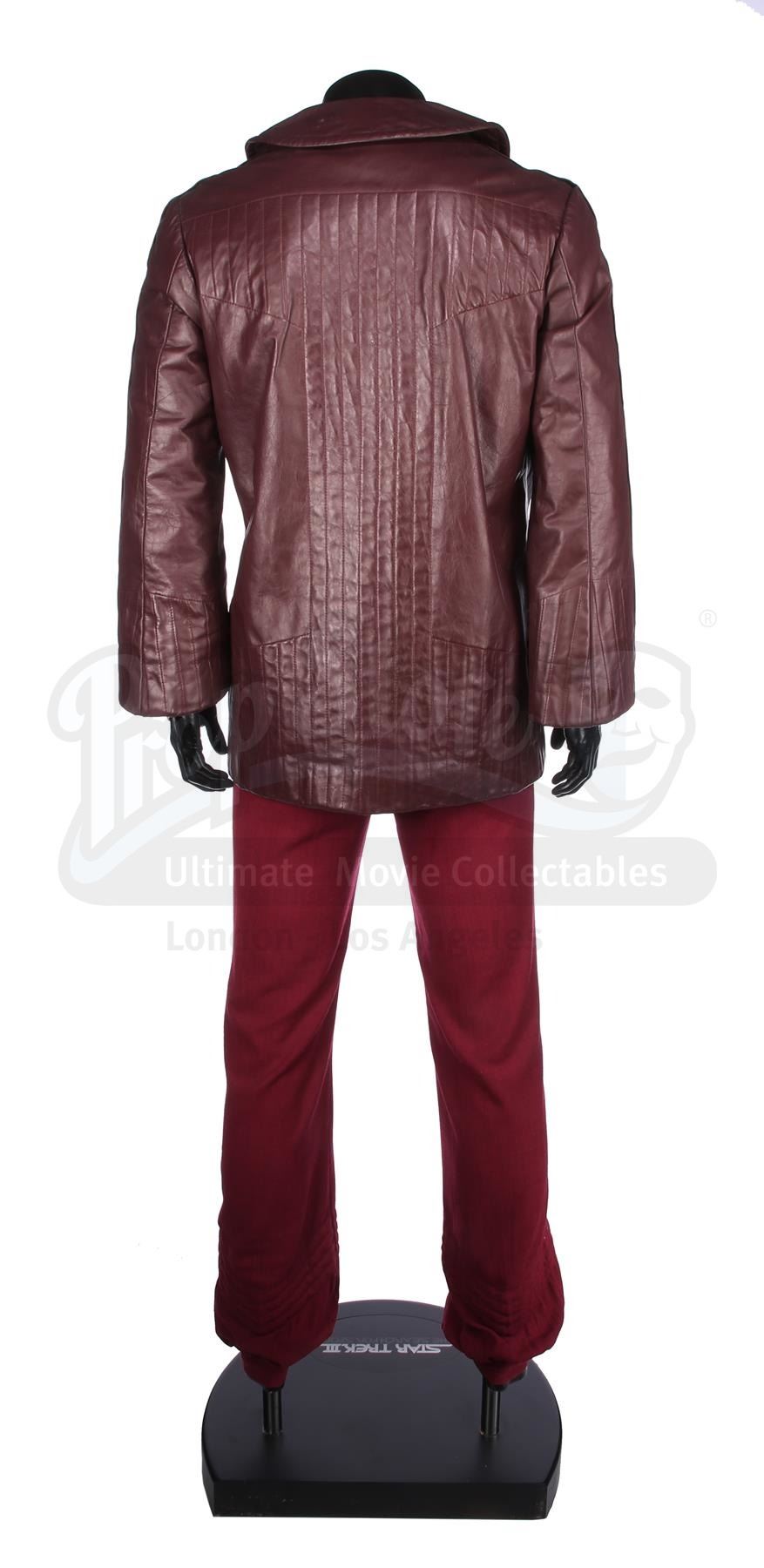 This costume was originally purchased at the Christie's "40 Years of Star Trek" auction, held in New York City in October 2006, and the lot retains all of its original auction tags. There are small holes to the upper and lower sleeves on the burgundy jacket, and on the lower leg section of the trousers, from production use and storage. Dimensions (displayed): 38 cm x 70 cm x 180 cm (15" x 27 1/2" x 71")