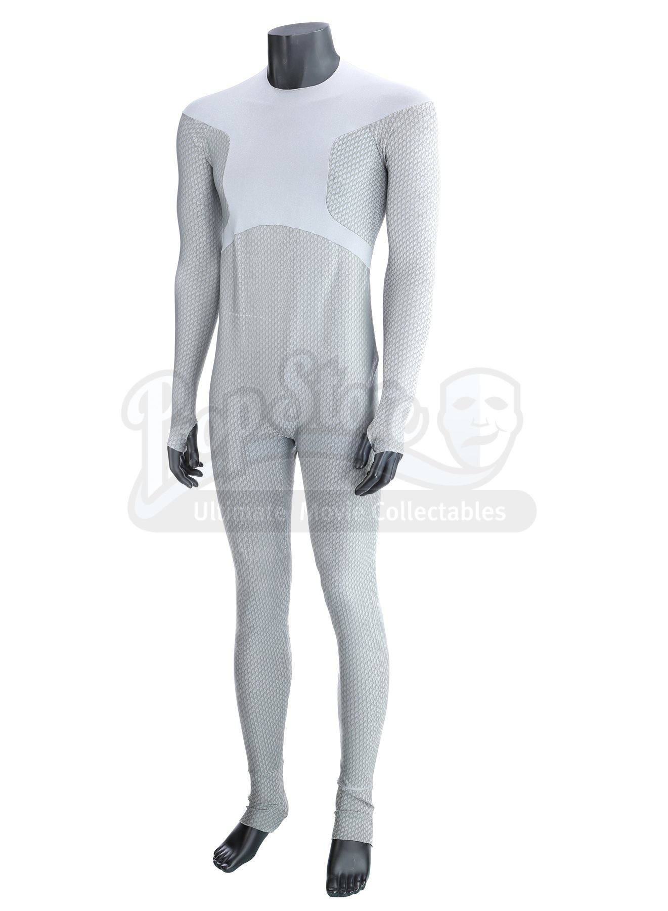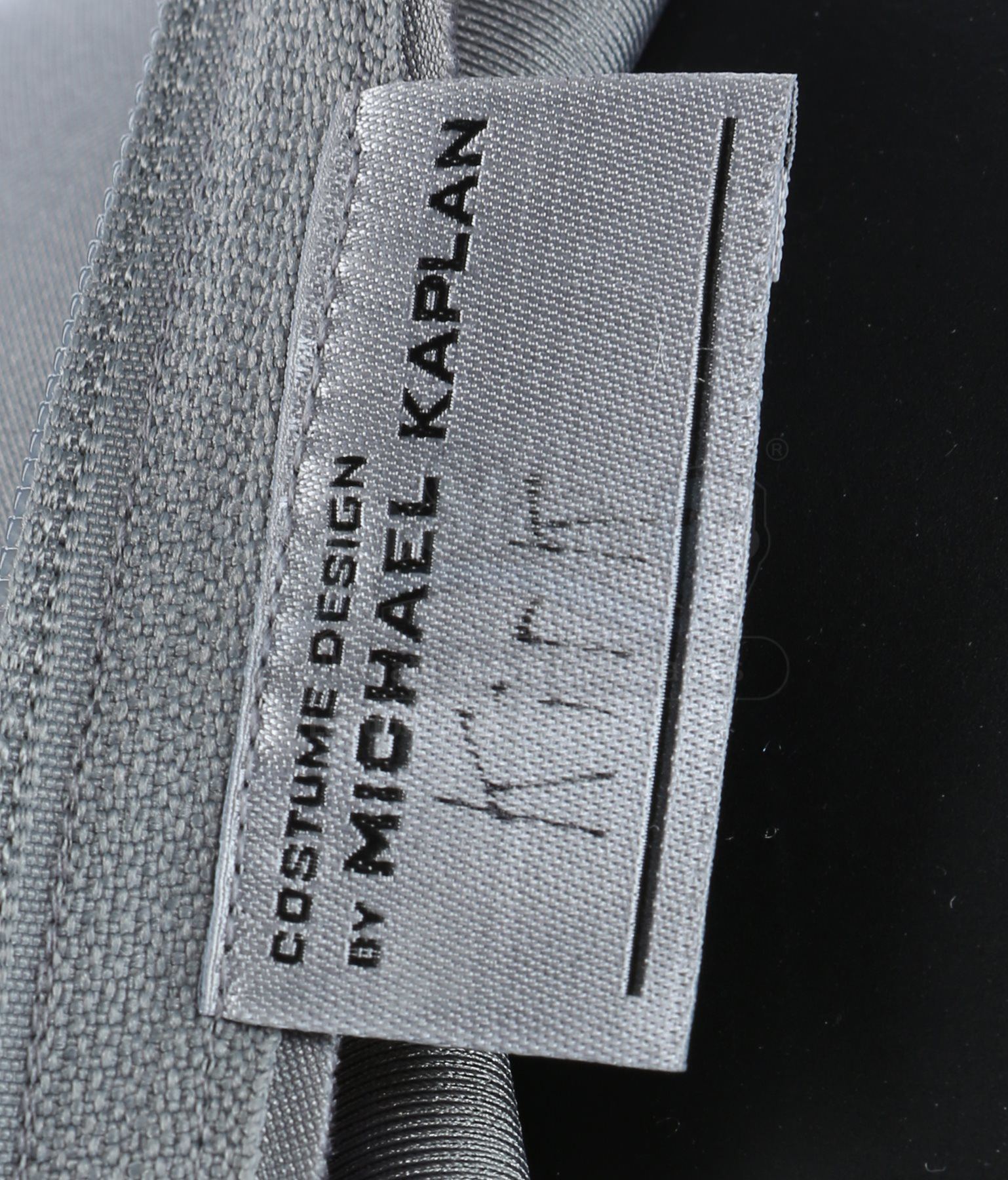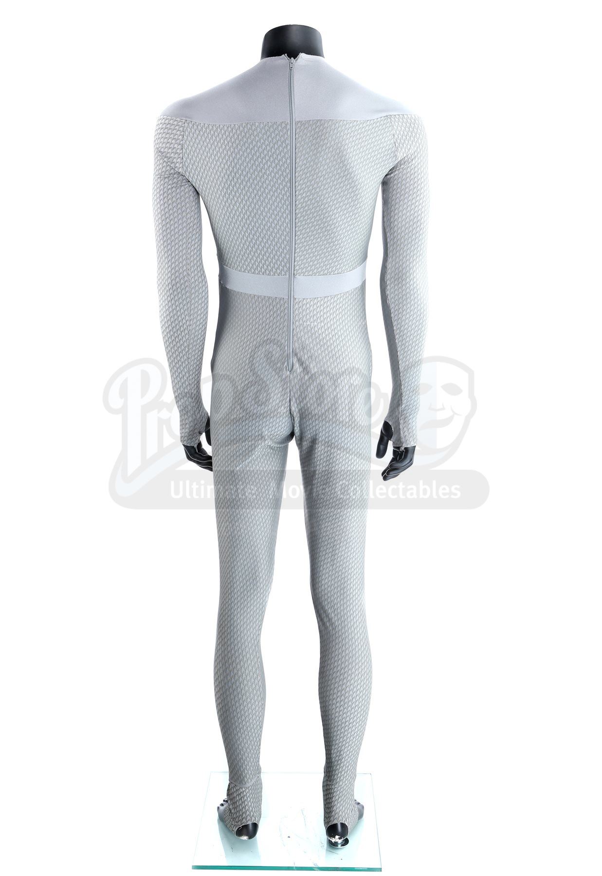 Captain Kirk's prototype wetsuit from Star Trek Into Darkness. Kirk wore the wetsuit when boarding the Enterprise stationed underwater on Nibiru. The silver grey wetsuit (approximate size 32) is made of a synthetic blend material and Spandex and features a printed optical repeat Starfleet insignia pattern, two thumbholes in the sleeves and a back zipper. The costume features a hand-written wardrobe label in the wetsuit marked "Kirk".Estimate: $400 - 600*Estimated sale price; sold without reserve.
