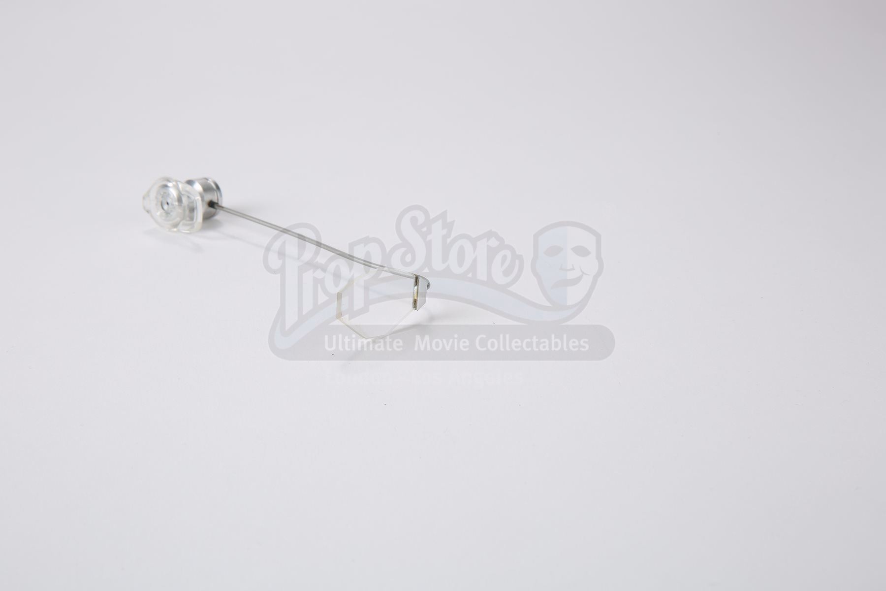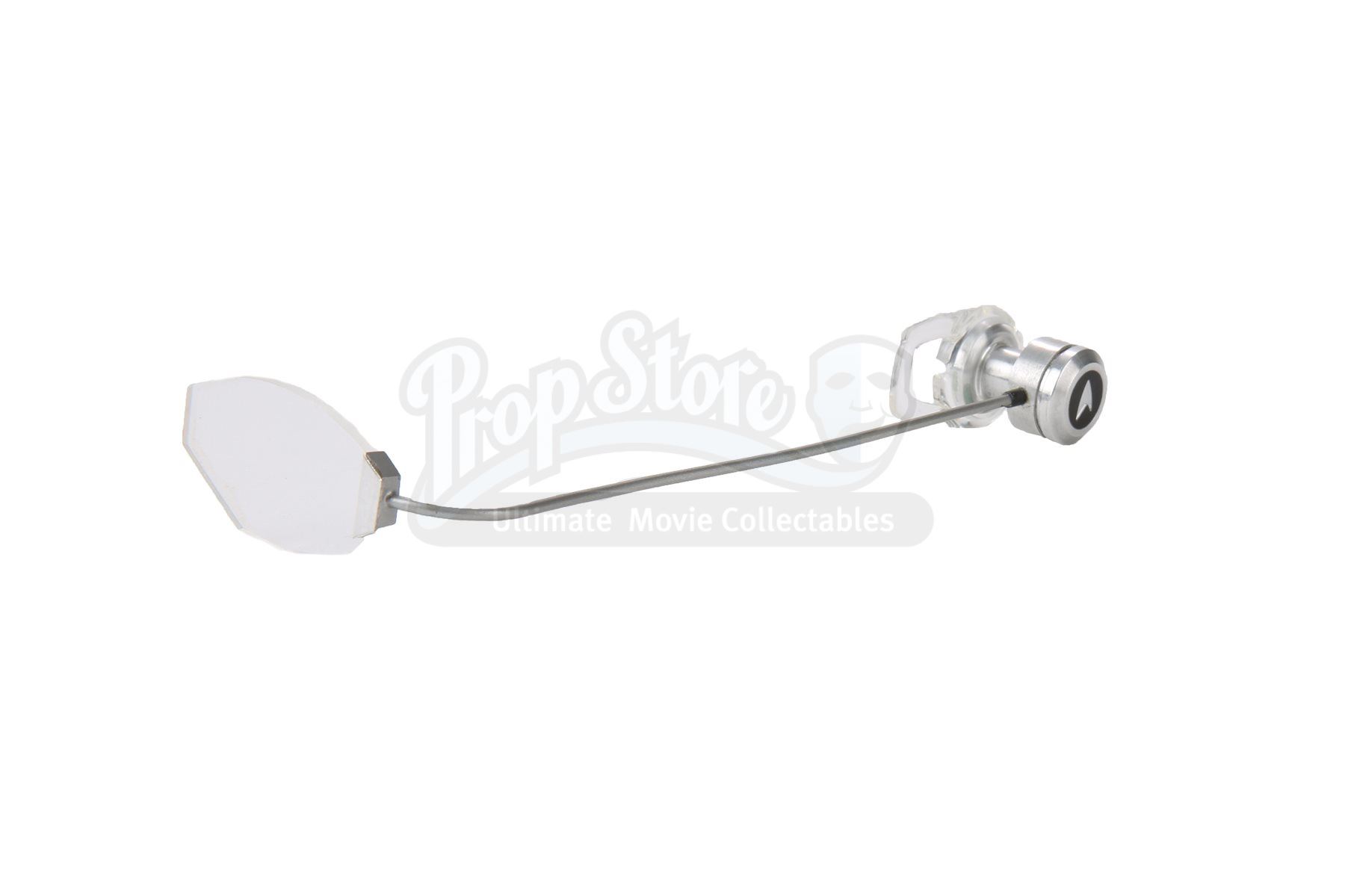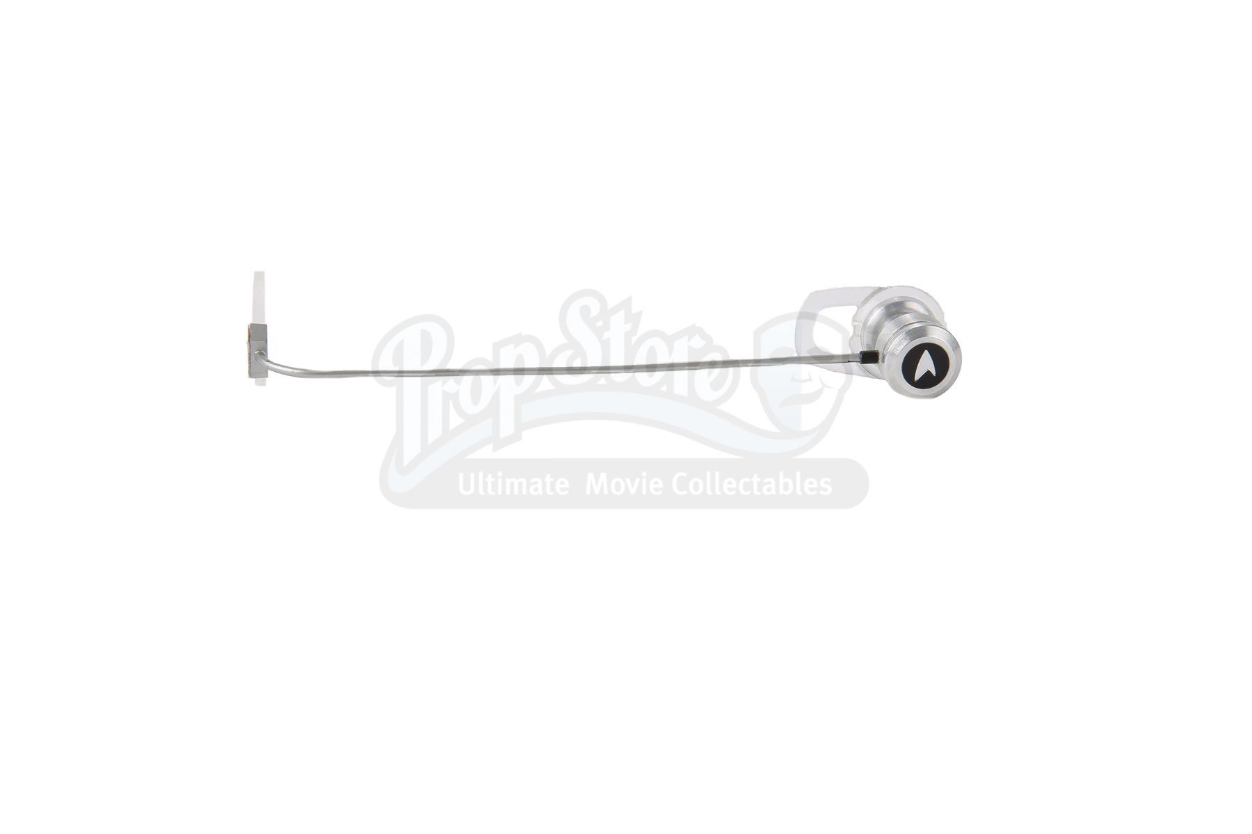An Enterprise transporter officer eyepiece from Star Trek Into Darkness. An officer wore an eyepiece when he beamed Spock up from the volcano on Nibiru and later when Spock was transported down to the streets of San Francisco to pursue Khan (who went under the alias of John Harrison).