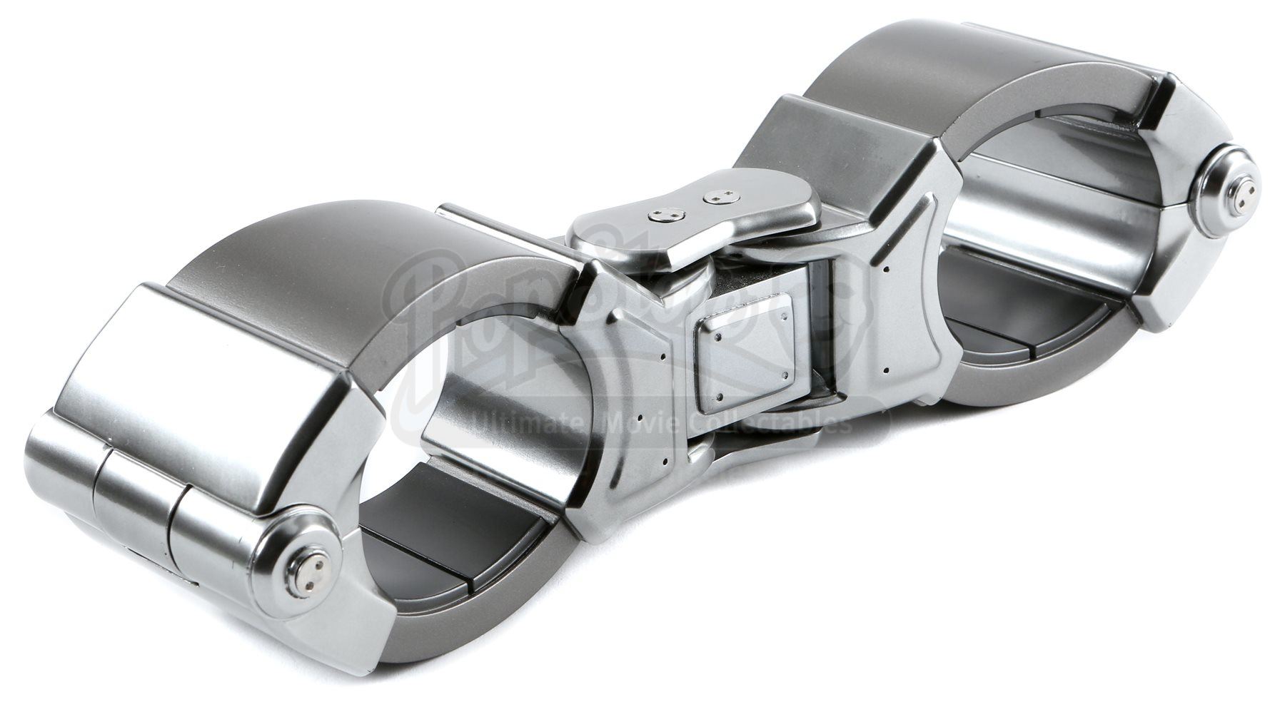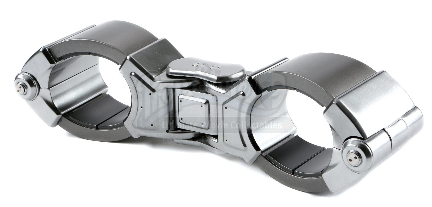 Khan's Enterprise handcuffs from Star Trek Into Darkness. Khan (who went under the alias of John Harrison) wore handcuffs when he was arrested by Captain Kirk and led by the crew of the Enterprise to his holding cell.