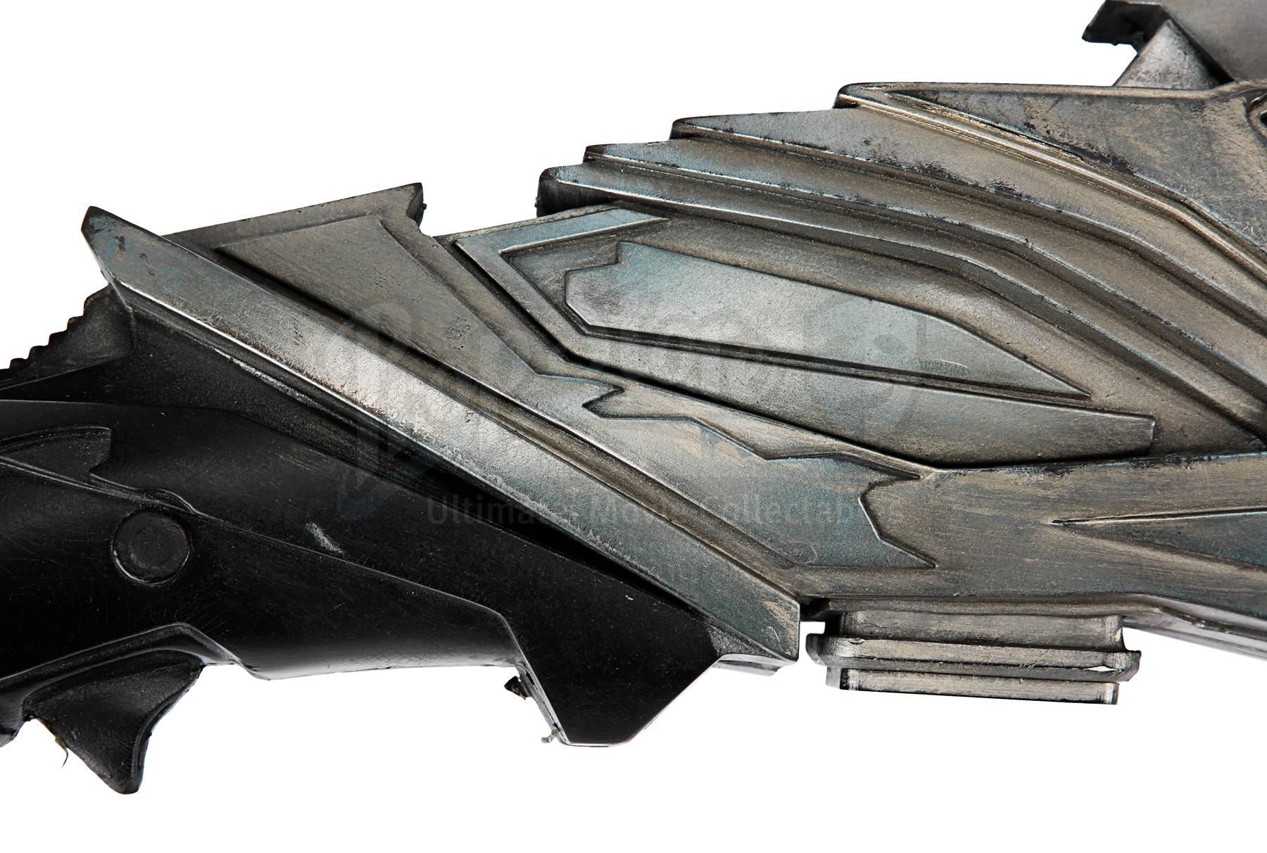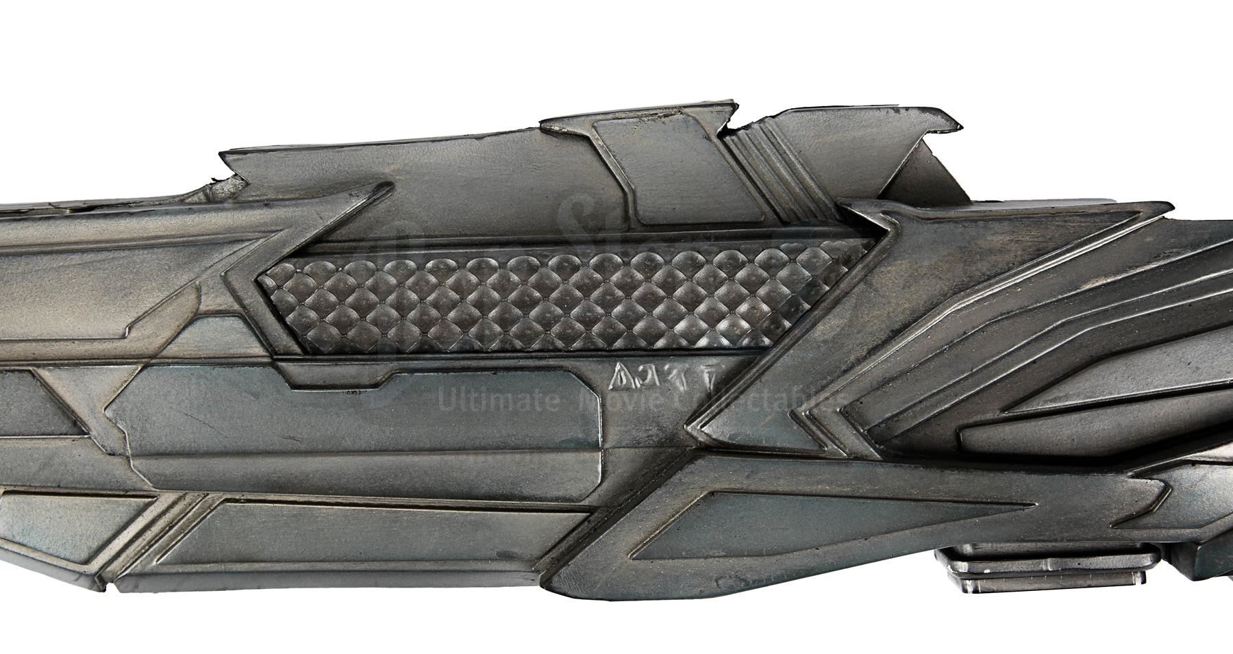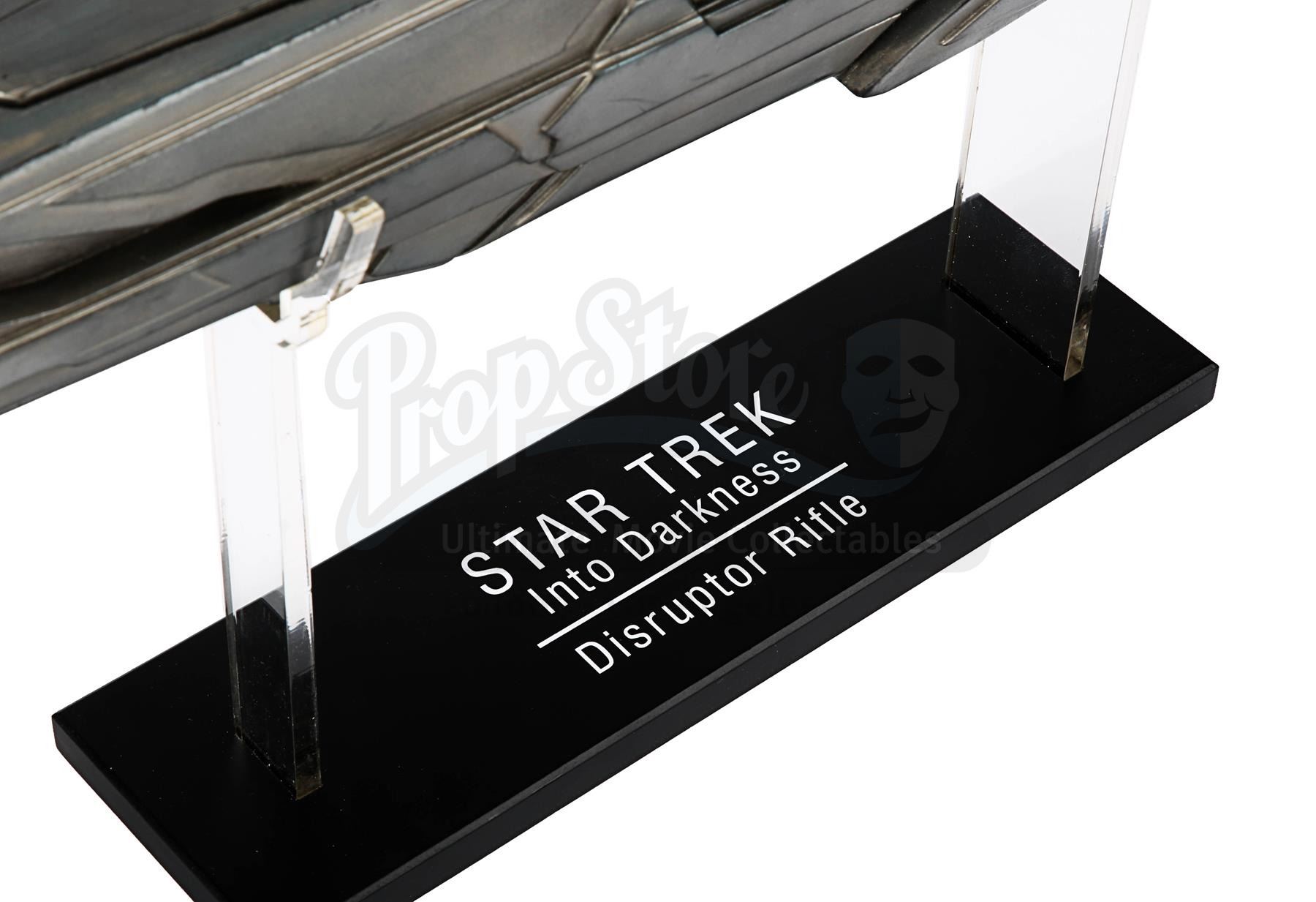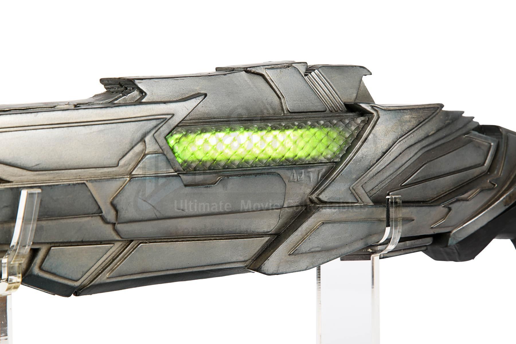 A light-up stunt Klingon disruptor rifle from J.J. Abrams' sci-fi sequel Star Trek Into Darkness. Disruptor rifles were used by the Klingons during the battle on Kronos with Kirk (Chris Pine), Spock (Zachary Quinto), Uhura (Zoë Saldana) and John Harrison (Benedict Cumberbatch). During the battle Spock picked up one of the rifles and started firing it.