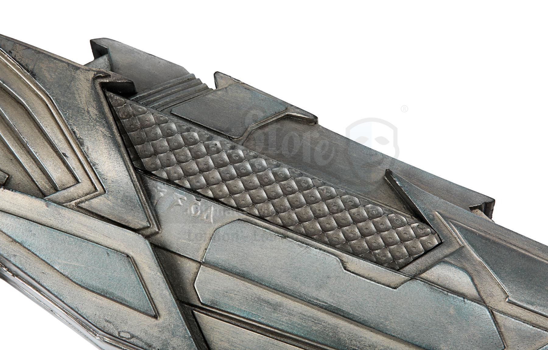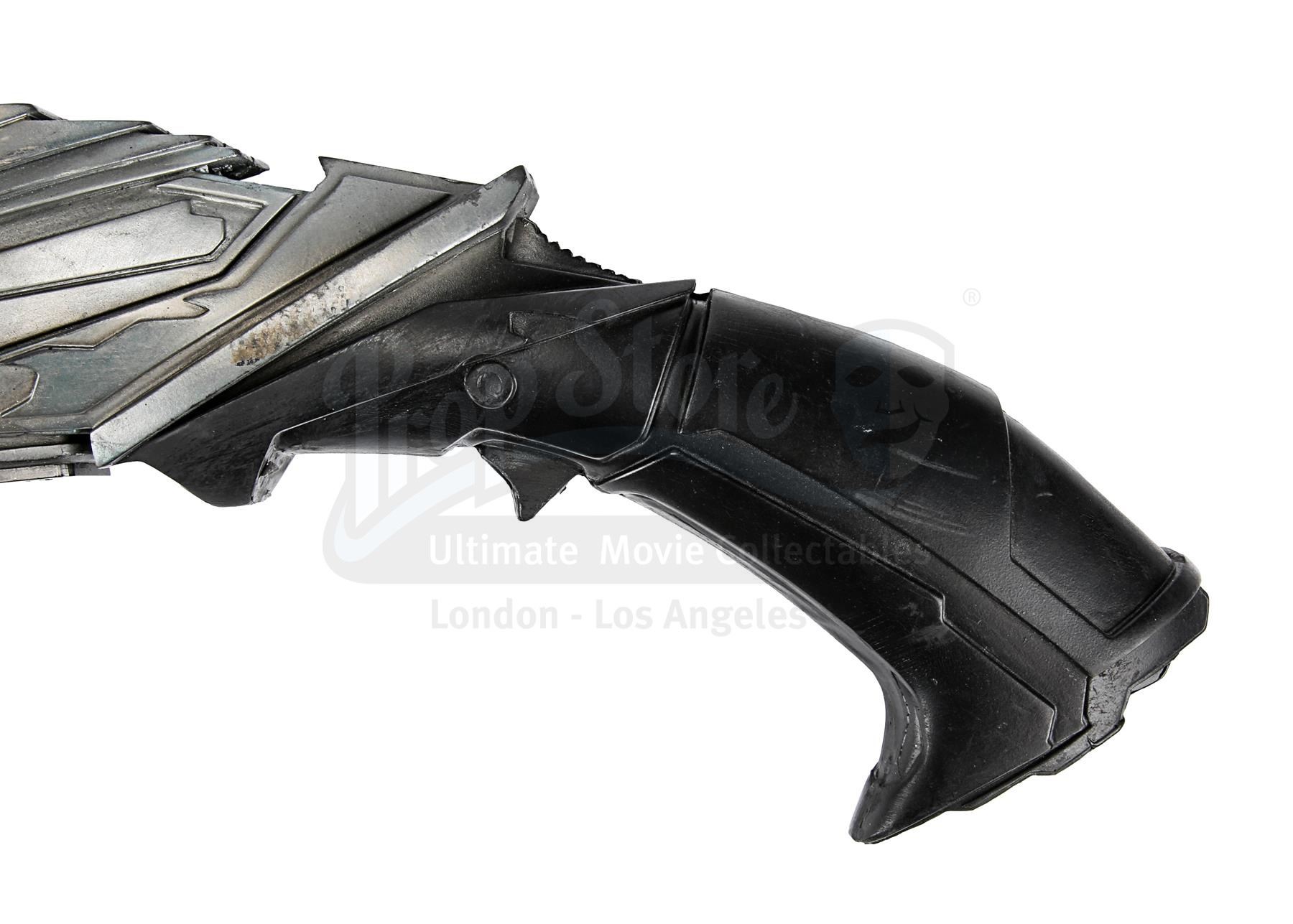 The stunt weapon is made predominantly of rubber and features textured plastic side panels which light up green when the button underneath is pressed. The weapon displays spiked blades, with the gun's jagged look reflecting the "barbarism of the Klingons", according to property master Andrew M. Siegel.
