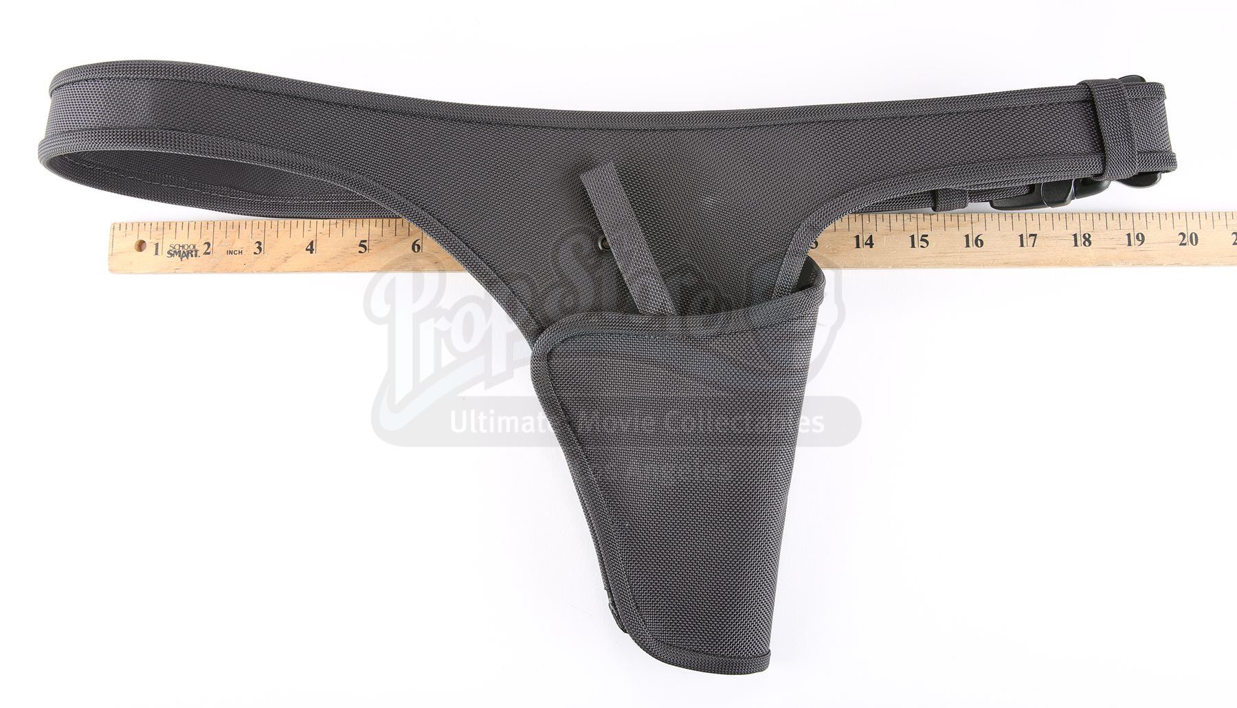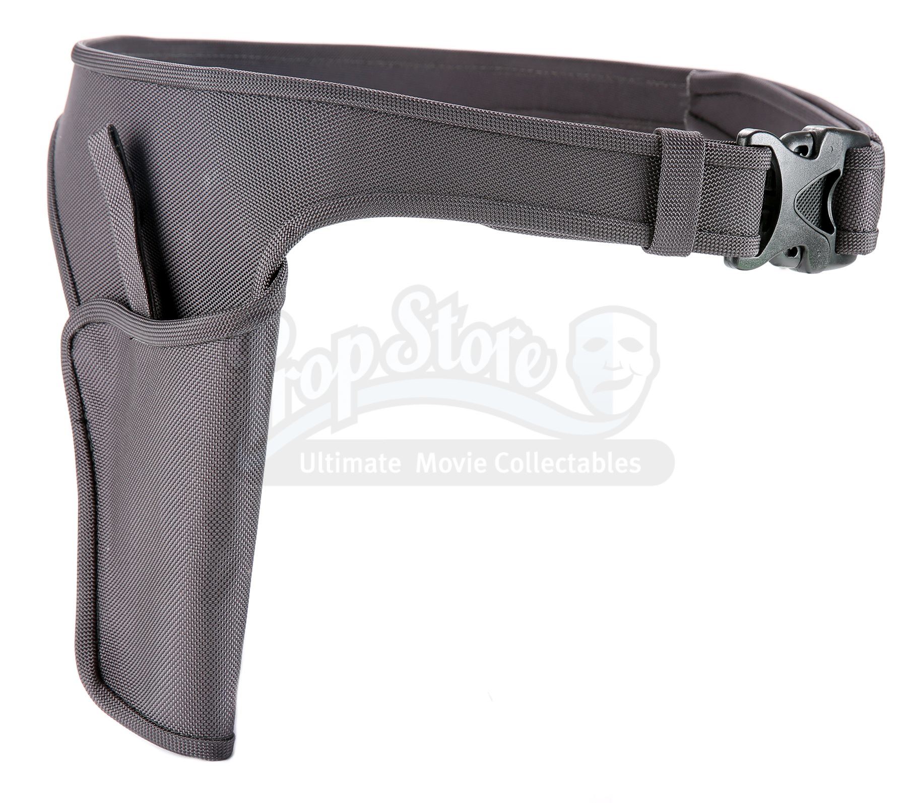 The charcoal grey belt is made of nylon and includes a snap buckle and a holster. The belt also includes a hand-written wardrobe label marked with the actor's name.Dimensions: 20" x 9 ½" x 3" (51 cm x 24 cm x 8 cm)