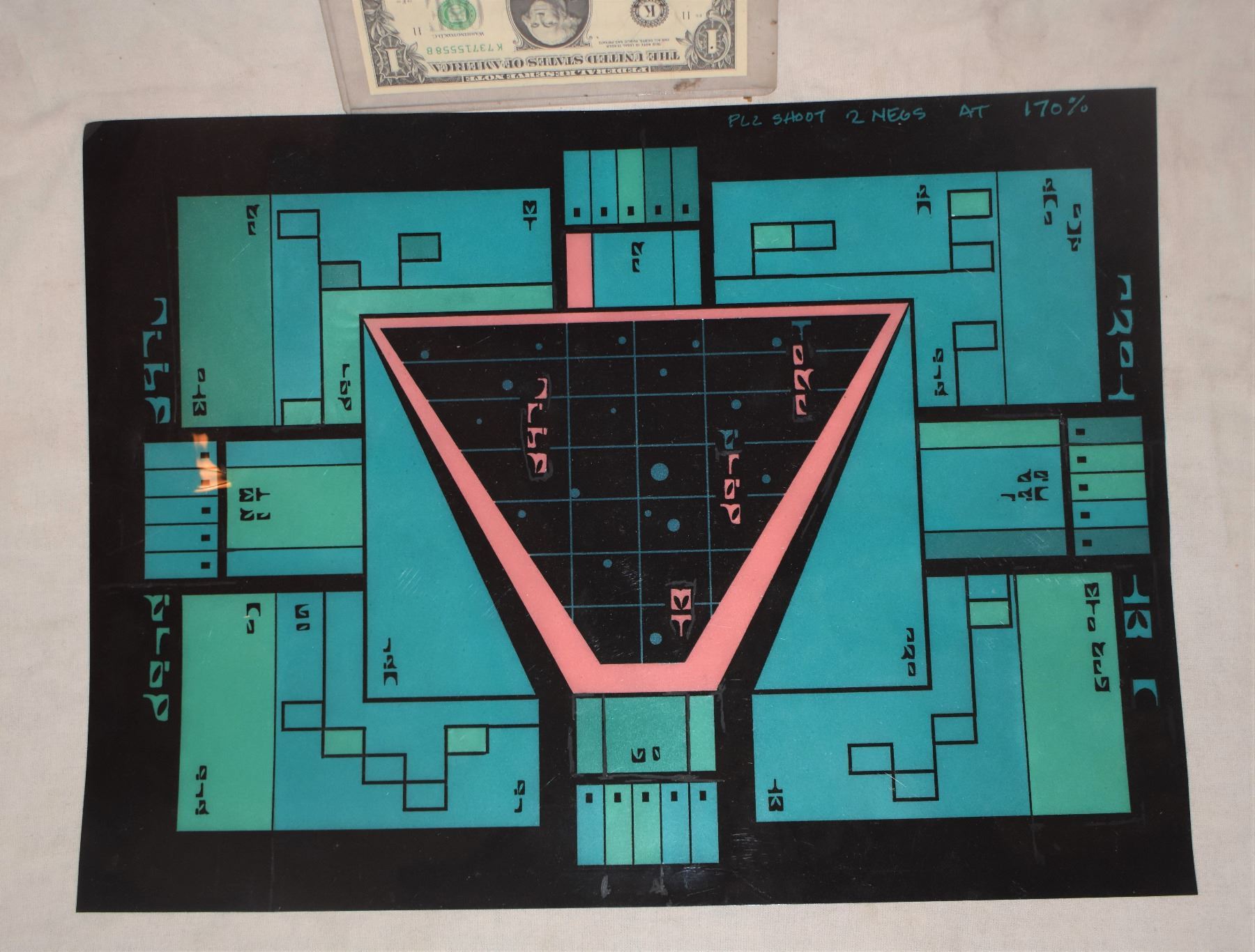 These are all of the SCREEN USED Bridge Control Panels from Alien Ships like KLINGON, ROMULAN, VULCAN, etc. They are cellophane, once taped onto plexiglass, and back lit.