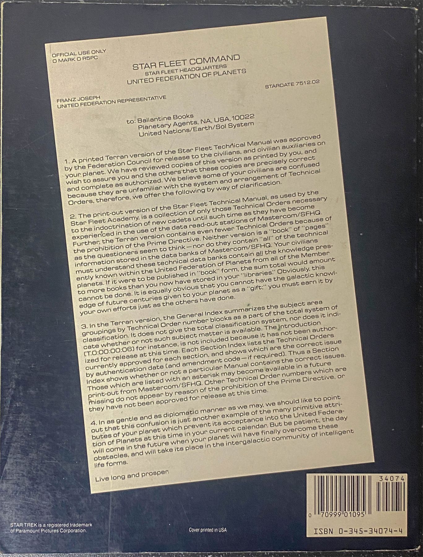 STAR TREK STAR FLEET TECHNICAL MANUAL