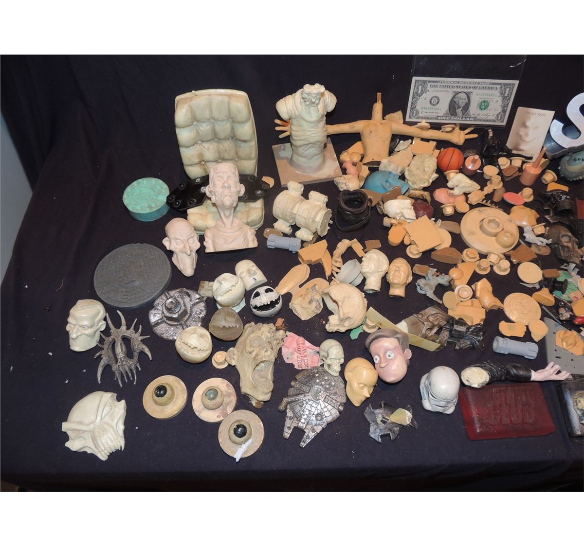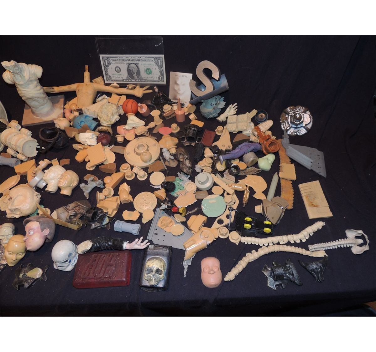 This is a huge lot of what looks to be 100's of production made castings. A few notables are the Borg Queen spine from Star trek Insurrection, Fight Club soap, Terminator 2 future war bones, The PJ's characters, and Virus parts. Winner takes all!