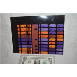 These are all of the STAR SHIP ENTERPRISE CONTROL PANELS. They are cellophane, once taped onto plexiglass, and back lit. These were used throughout th