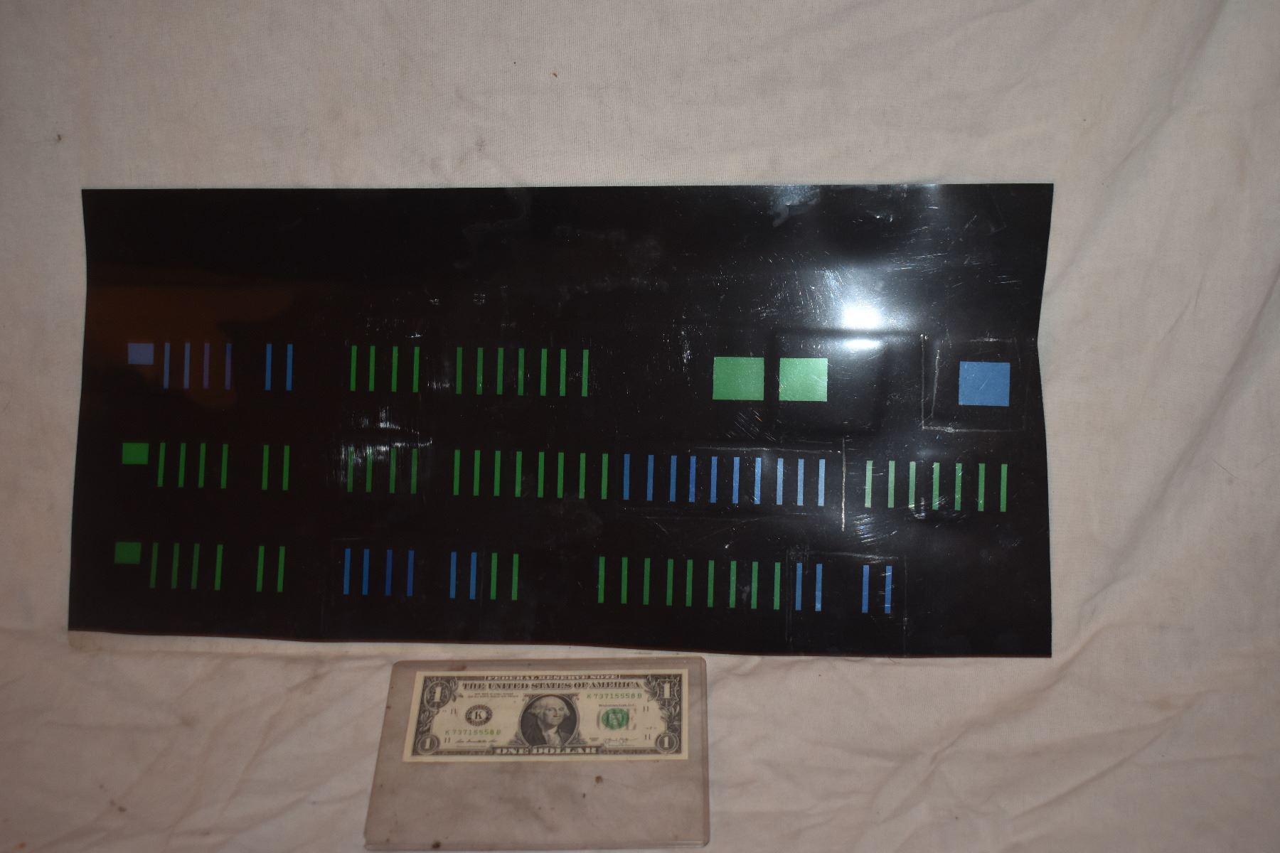These are all of the STAR SHIP ENTERPRISE CONTROL PANELS. They are cellophane, once taped onto plexiglass, and were back lit.