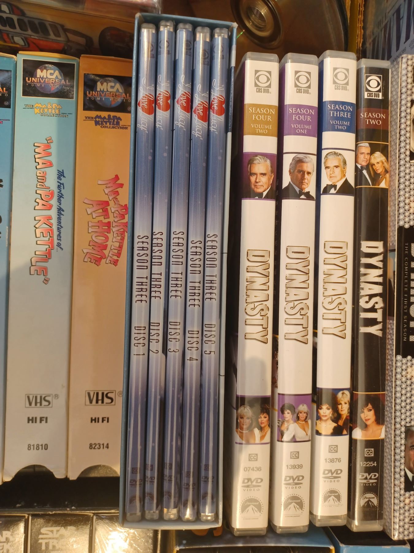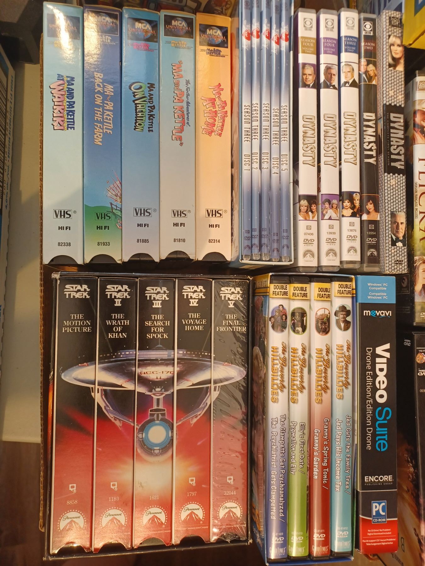 STAR TREK(VHS); MA & PA KETTLE MOVIE SET; FIVE I LOVE LUCY DVD SET, BEVERLY HILL HILLBILLIES, DYNASTY