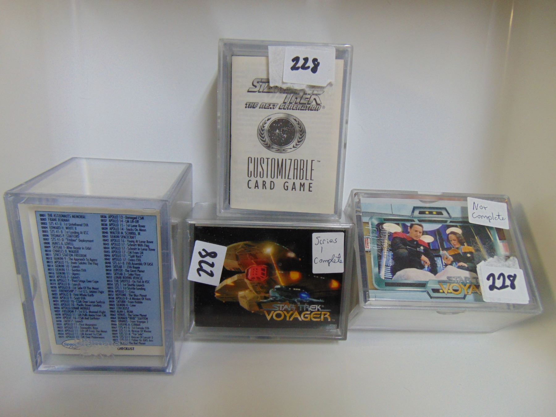 STAR TREK VOYAGEUR SERIES 1 COMPLETE AND SERIES 2 (NOT COMPLETE)CARD SETS STAR TREK NEXT GENERATION CARD GAME AND USA SPACE CARDS NOT COMPLETE SET, ABOUT 370 CARDS.
