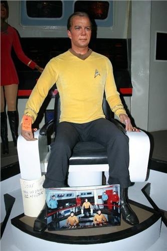 WILLIAM SHATNER (Captain James T. Kirk) Wax Figure. Includes (1) large colored photo of the set and an 8x12 black & white set photo and (1) photo of cast members with Captain Kirk wax figure.