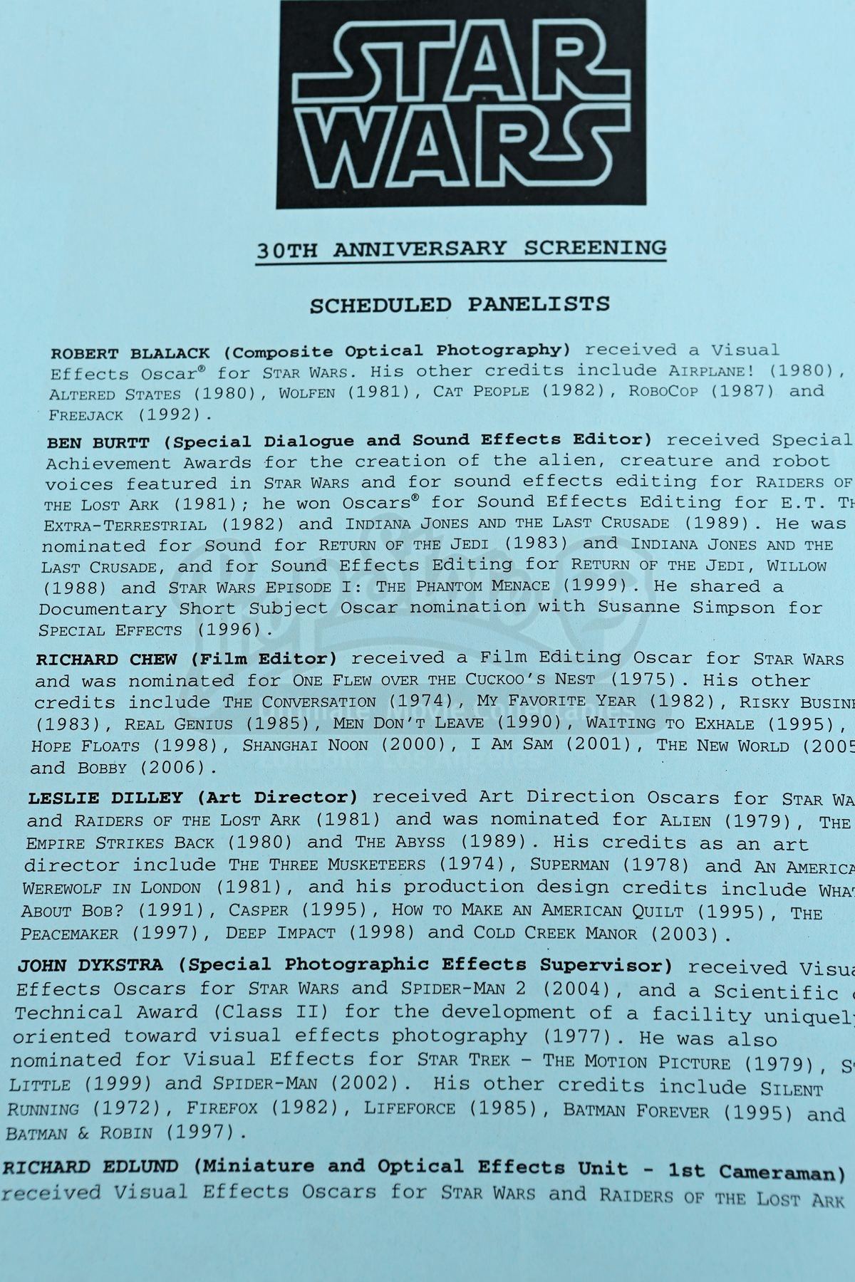Additionally, later documents from a 30th anniversary screening of the film are included in the lot. These documents give a list of the panels which were presented at a screening and provide information about the awards the film was nominated for. The lot shows some signs of wear from storage and use, and is in fine overall condition. Dimensions (largest document): 35.5 cm x 21.5 cm (14” x 8 ½”)