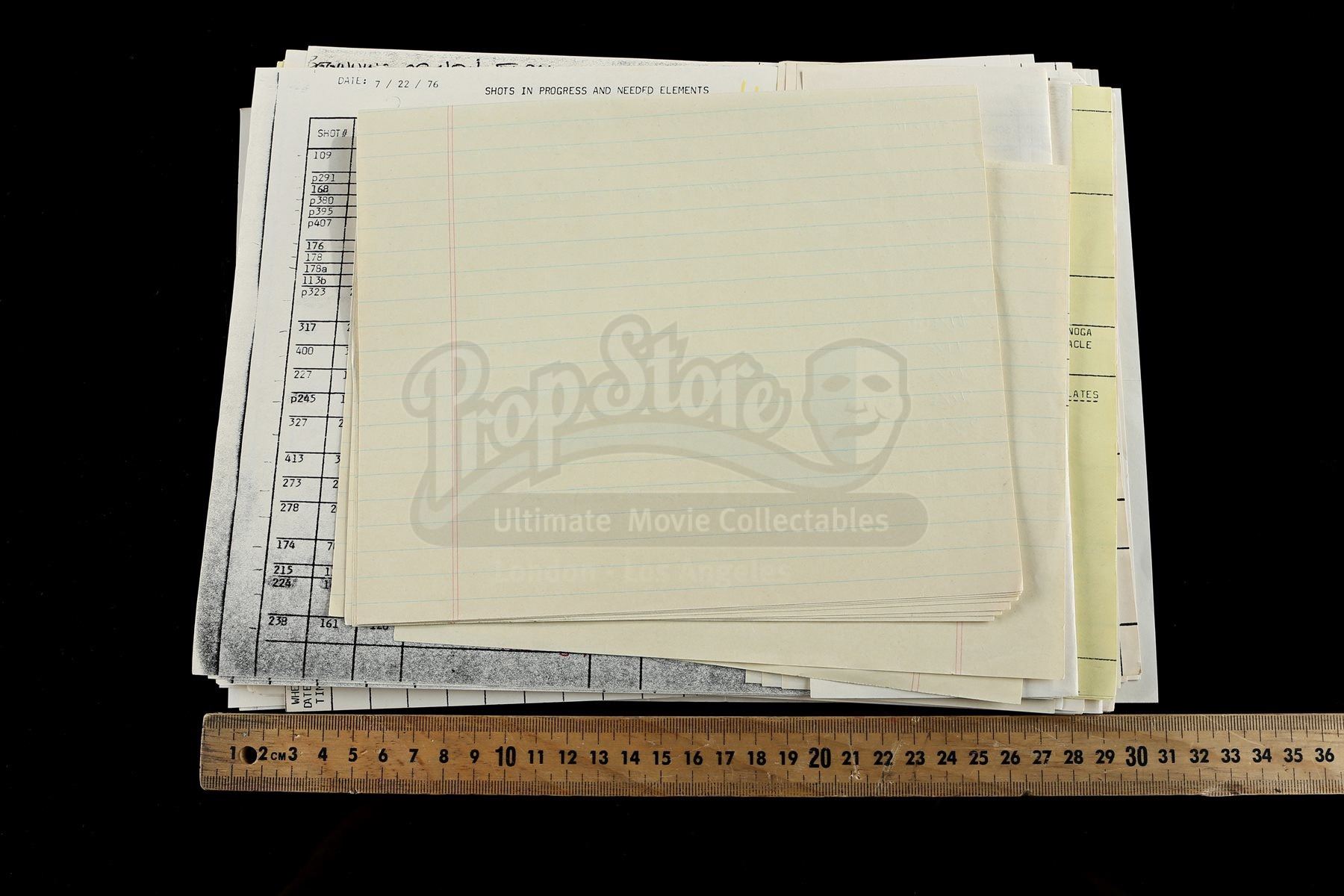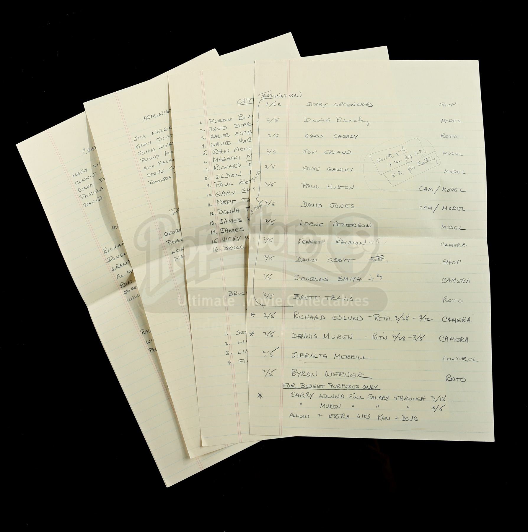 This set of production documents is a collection of over 60 pages of daily production reports, termination papers, budgets and personnel lists, and includes 16 storyboard copies. A set of Rolodex inserts are also included. These contain contact information for companies used by ILM while working on the film.
