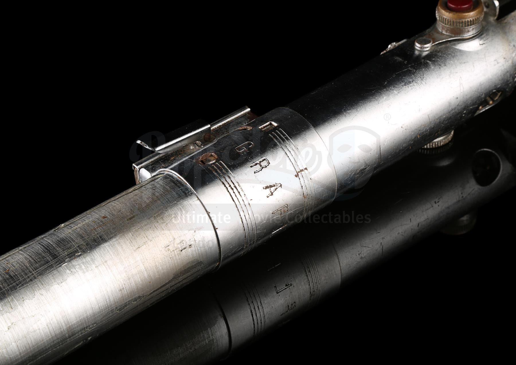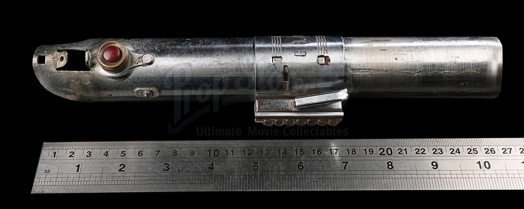 At present, the location of both the well-documented hero Graflex lightsaber and well-documented "spinning blade" effects version of the prop are not known. Therefore, this may be the only, or certainly one of the few, genuine Luke Skywalker lightsaber props from the original Star Wars film still in existence. While it is uncertain whether this piece was ever used in filming or not, it has a strong chain of provenance and the appropriate physical construction to support its authenticity and is a wonderful example of this legendary film prop. Included are a letter of authenticity from Andy Mitchell who originally obtained the piece from the Elstree backlot, and from a friend of Mitchell's who was gifted the piece by Mitchell in 1983.