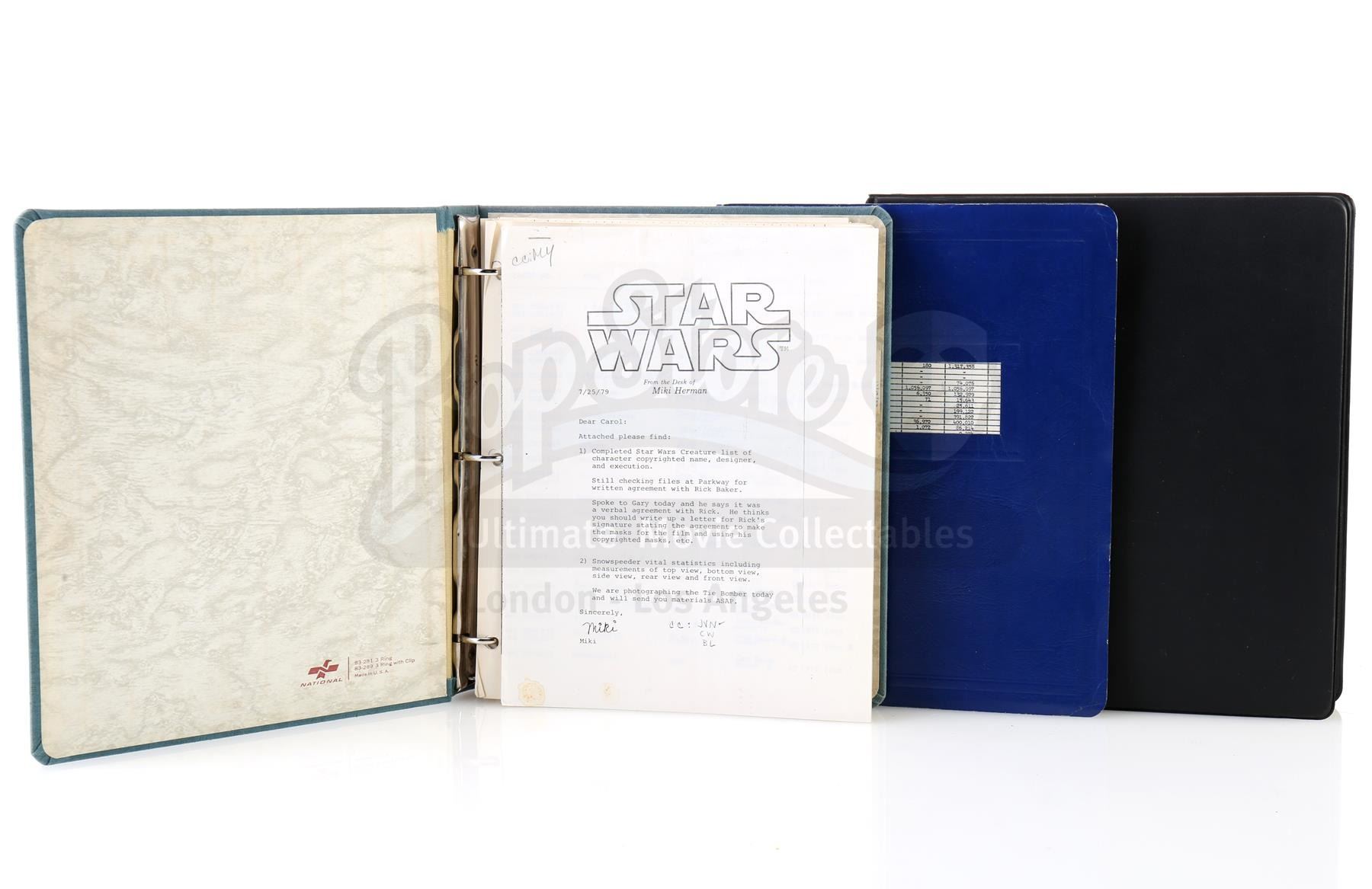 A production budget and cost binder set from the productions of George Lucas' Star Wars: A New Hope and Irvin Kershner's Star Wars: The Empire Strikes Back. The set contains extensive, specific details of the budget and final costs of A New Hope, and the budget of The Empire Strikes Back.