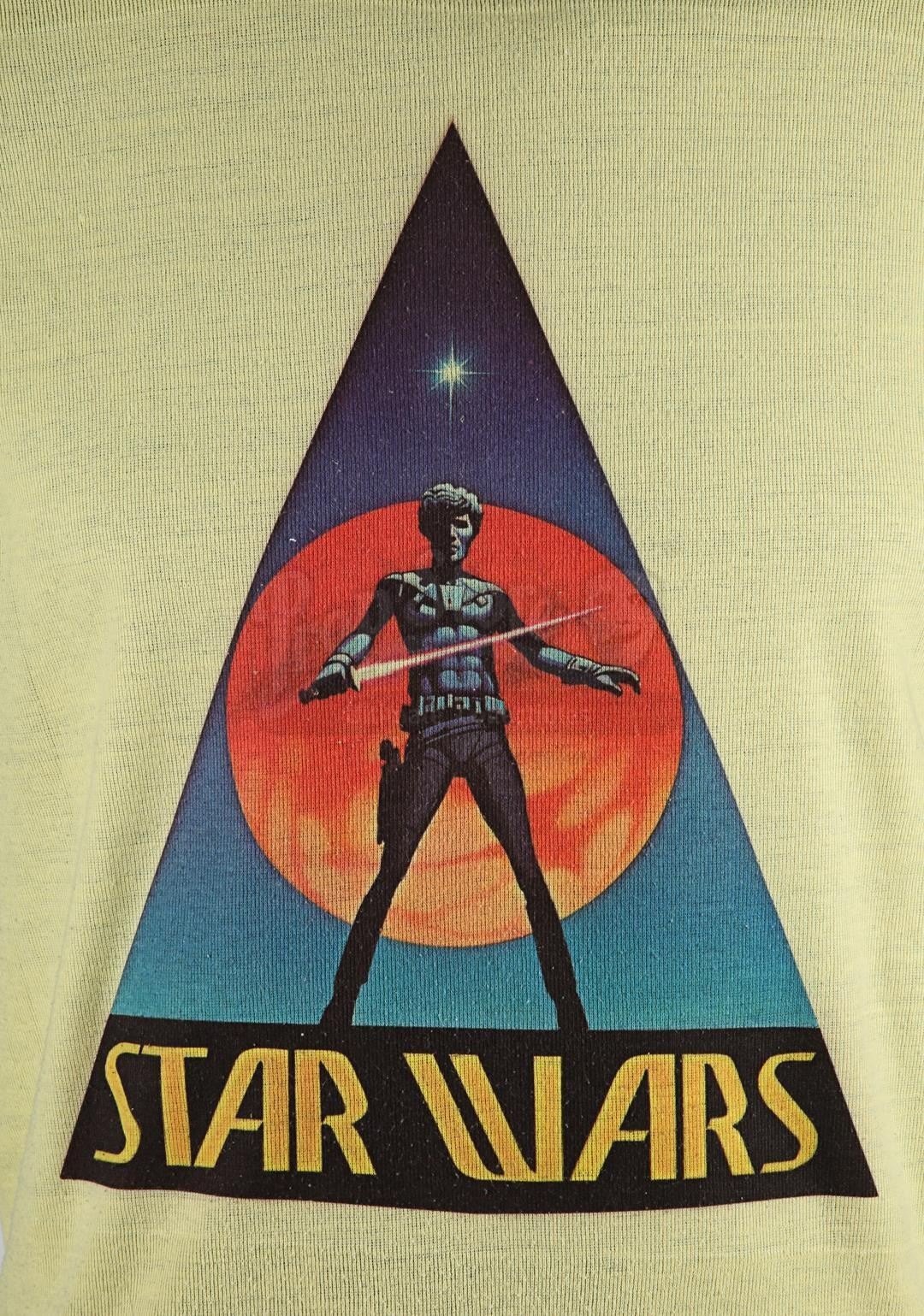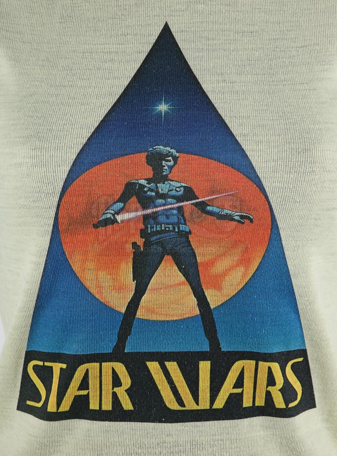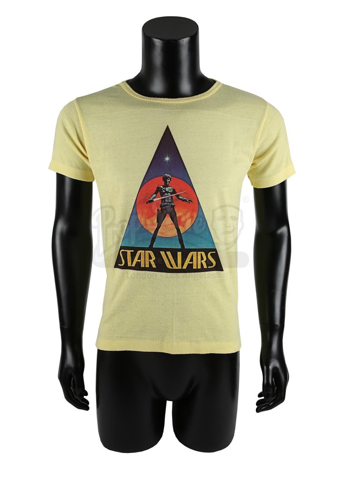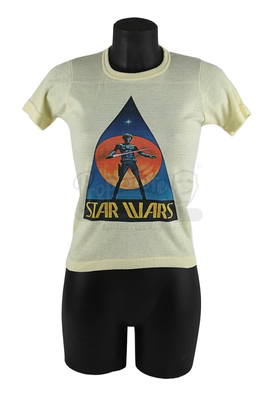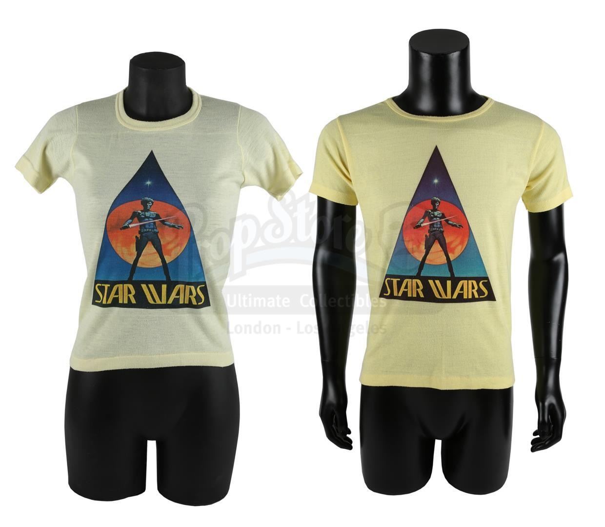 Two crew T-shirts from the production of George Lucas' Star Wars: A New Hope. T-shirts were gifted to members of the crew.