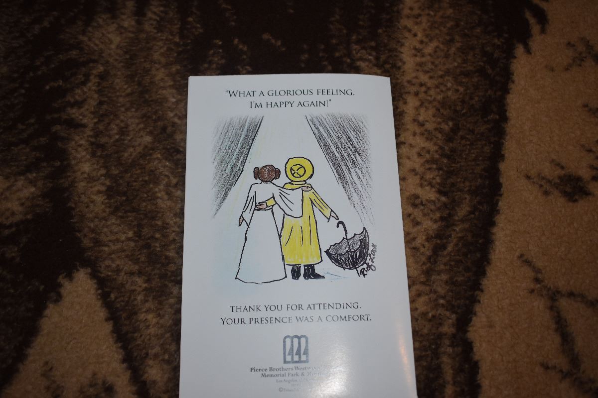 To be honest I feel a bit creepy offering this, but a friend of mine went to Carrie Fisher's Funeral today. Her mother Debbie Reynolds was also laid to rest in the same service. Each a legend in her own right.