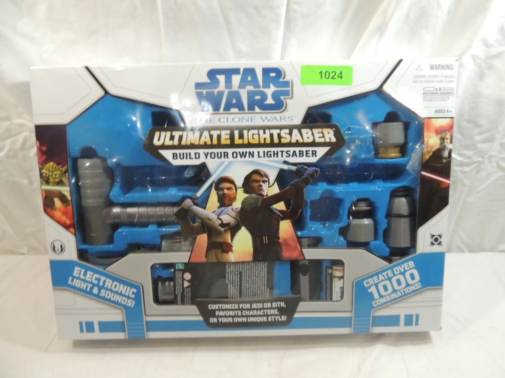 MISSING SOME PIECES, STAR WARS THE CLONE WARS ULTIMATE LIGHTSABER BUILD YOUR OWN LIGHTSABER, CUTOMIZE FOR JEDI OR SITH, AS SHOWN SEE PHOTO FOR MORE DETAILS.