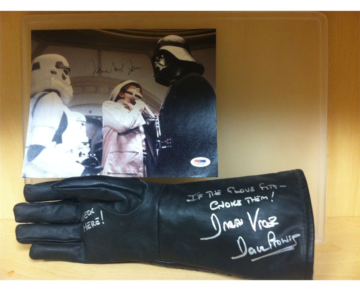 Also included is a leather Vader style glove signed by David Prowse in person with the best quote ever! "If the glove fits choke them" and on the palm "Neck here!"