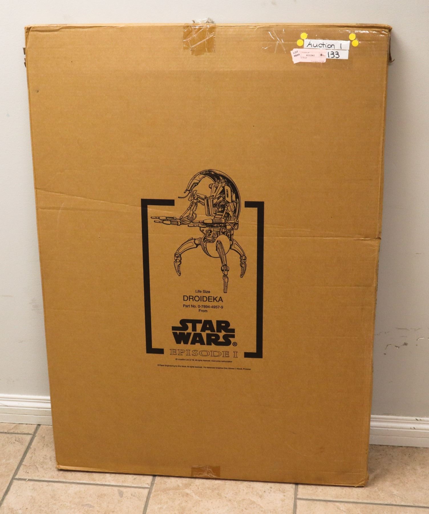 DK Publishing 3D life size droid. Unopened. In-store movie tie-in book promotion from DK Publishing in 1999 and very limited number were built. These are life size, three dimensional posable pieces used in book stores to promote the books. These have never been opened or assembled. There were 4 produced at the time - Destroyer Droid, Battle Droid, R2-D2 and a Pit Droid. Cardboard