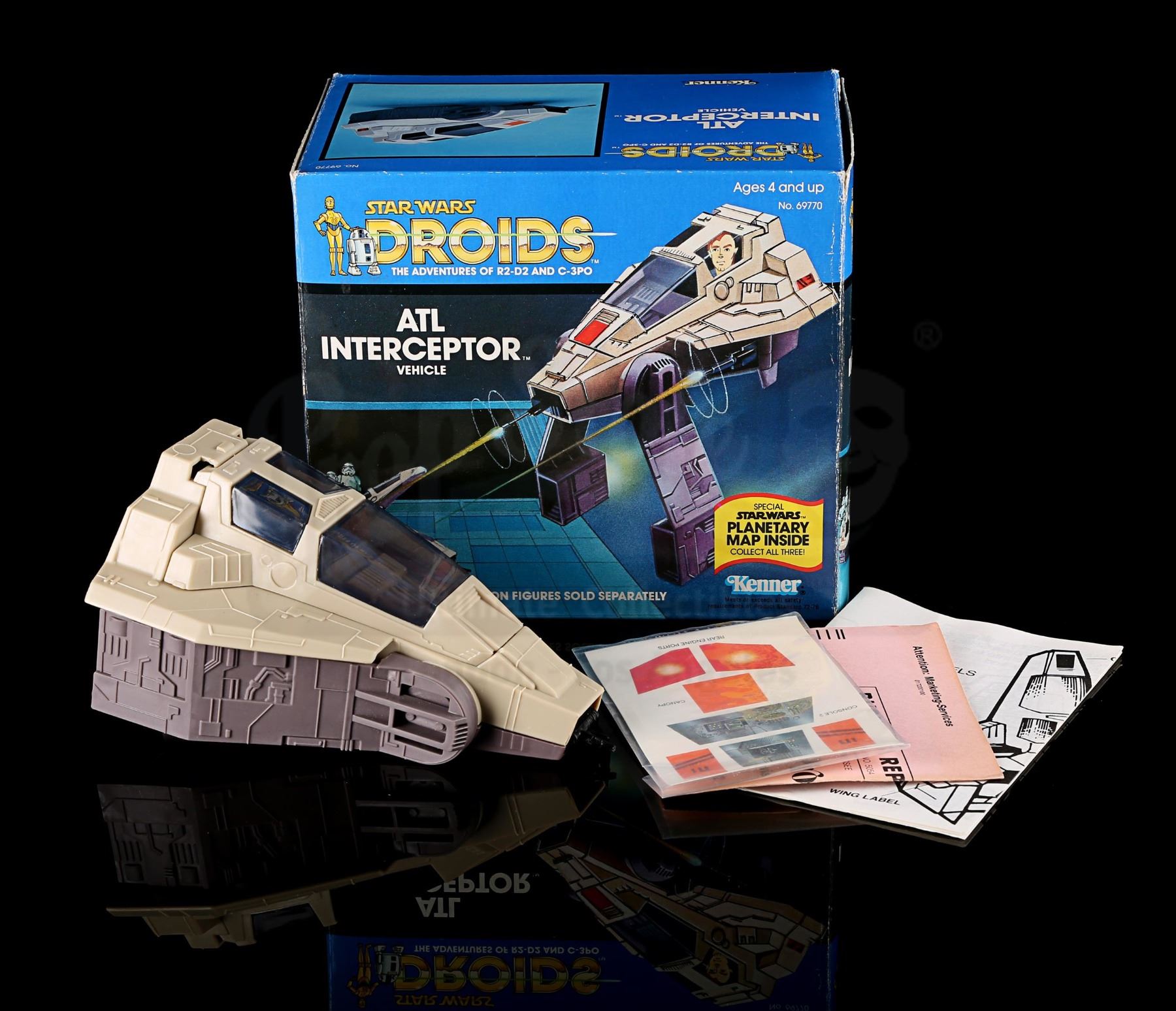 Only three vehicles were released as part of the Droids line. Opened. Stickers unused and not applied to vehicle.