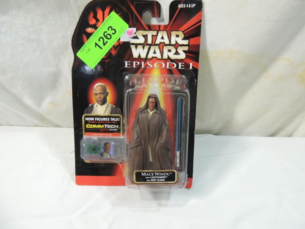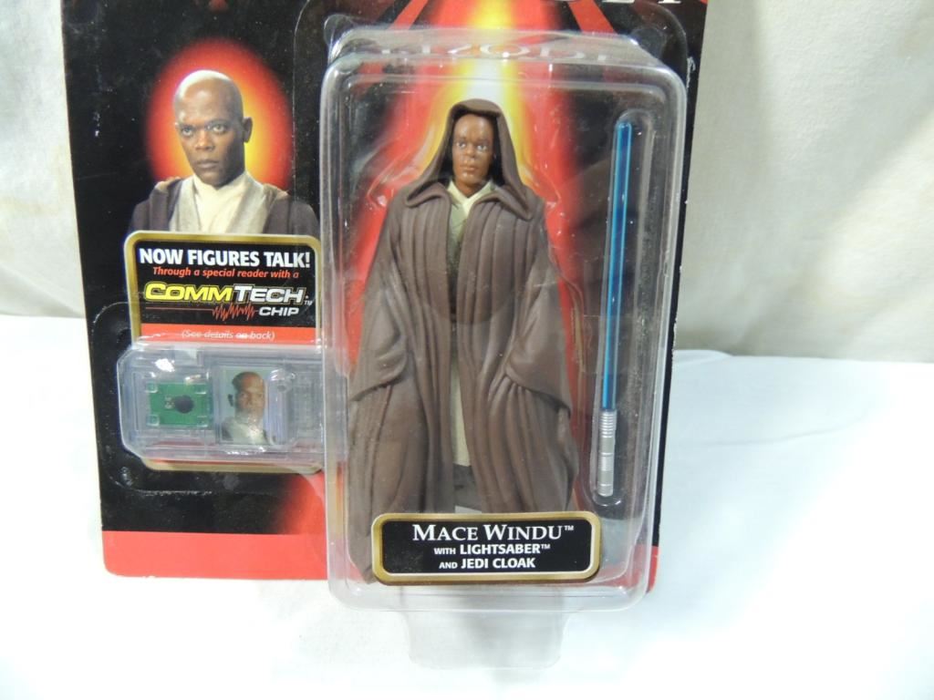 MACE WINDU WITH LIGHT SABER AND JEDI CLOAK COMMTECH CHIP NEW NEVER OPENEND AS SHOWN SEE PHOTO FOR MORE DETAILS