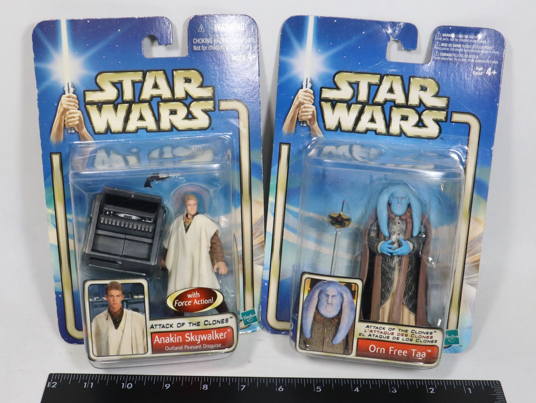 STAR WARS ATTACK OF THE CLONES HASBRO CARDED ACTION FIGURE 2002 AND EPISODE II ANAKIN SKYWALKER OUTLAND PEASANT STAR WARS ATTACK OF THE CLONES HASBRO CARDED ACTION FIGURE 2002