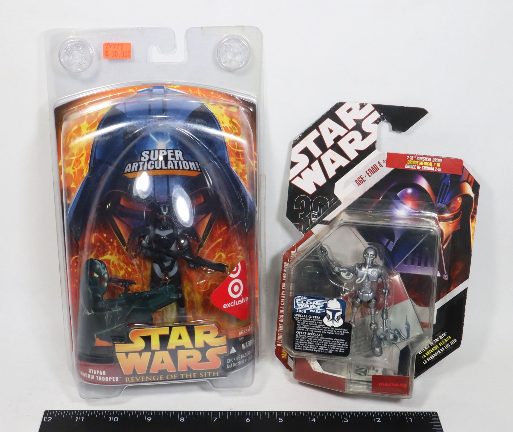 TARGET EXCLUSIVE REVENGE OF THE SITH HASBRO CARDED ACTION FIGURE IN CASE AND 30TH ANNIVERSARY 2-1B SURGICAL DROID REVENGE OF THE SITH 2007 CARDED STAR WARS ACTION FIGURE HASBRO