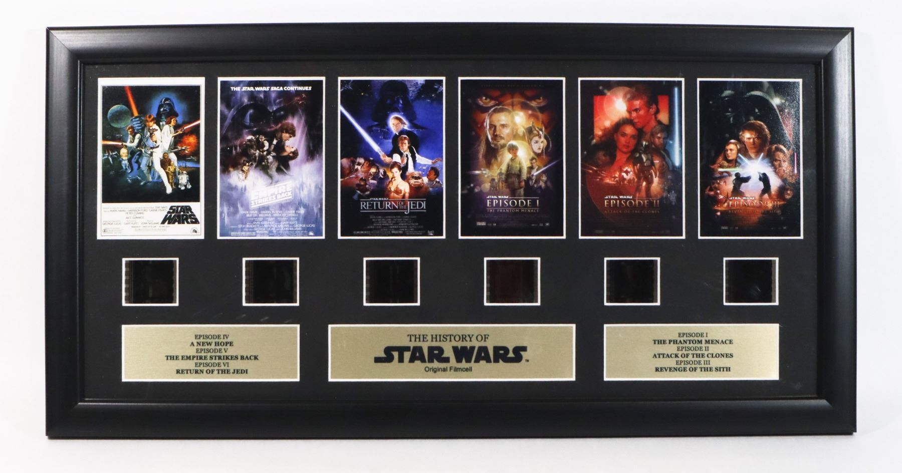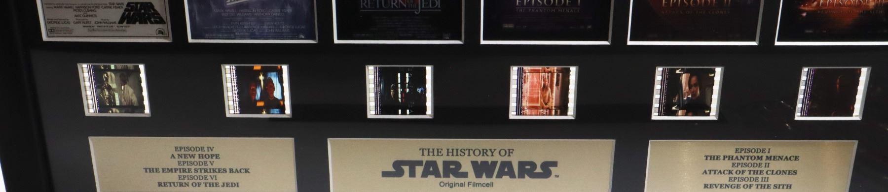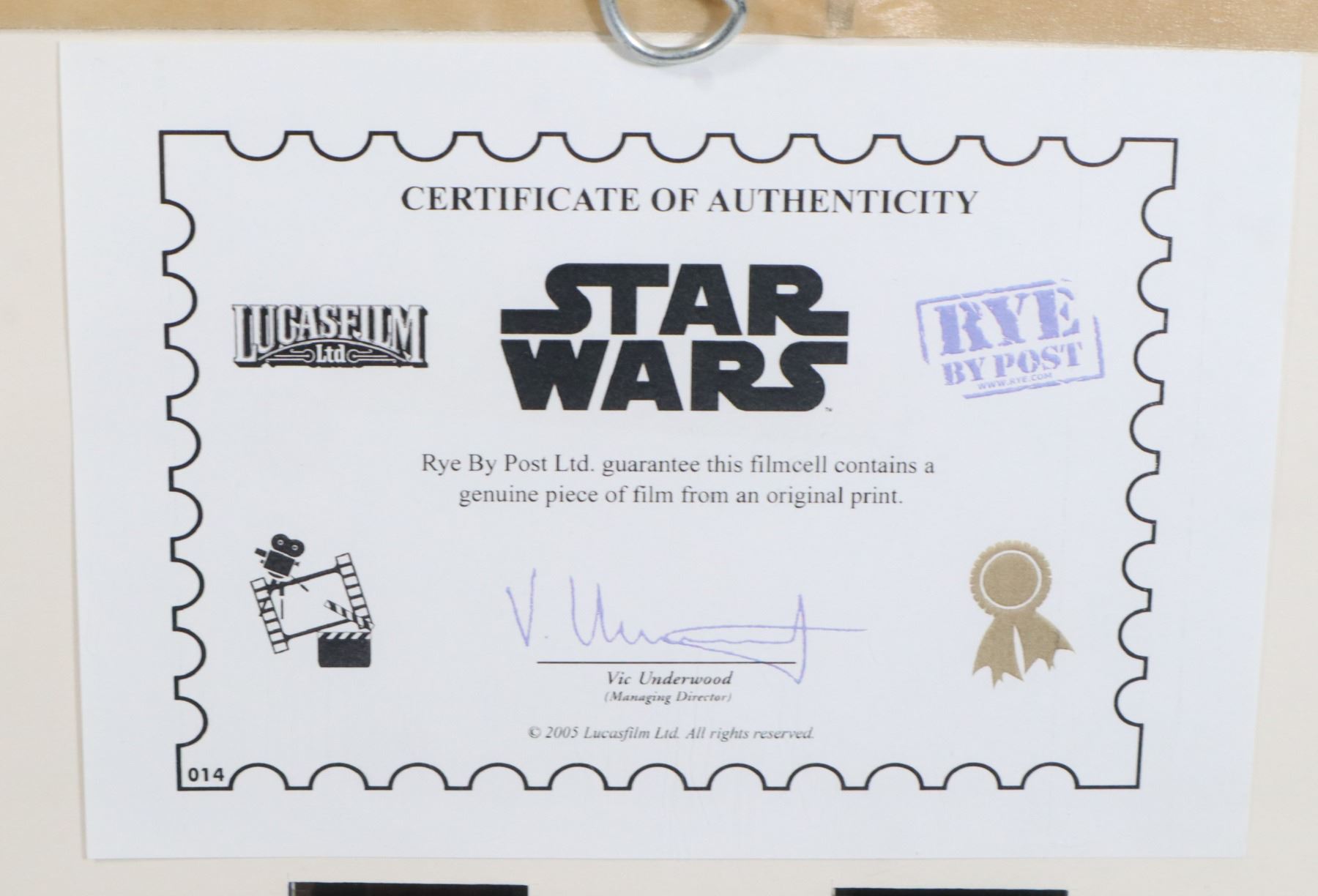 LUCASFILM: FRAMED FILM CELLS AND MINI POSTERS FROM SIX ORIGINAL STAR WARS MOVIES PLUS CERTIFICATE OF AUTHENTICITY (PICTURES)
