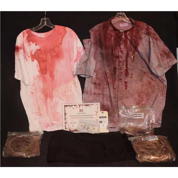 ROB ZOMBIE'S 31 BLOODY LEVON WALLY WARDROBE W/ WIG SCREEN MATCHED HERO & STUNT BOTH
