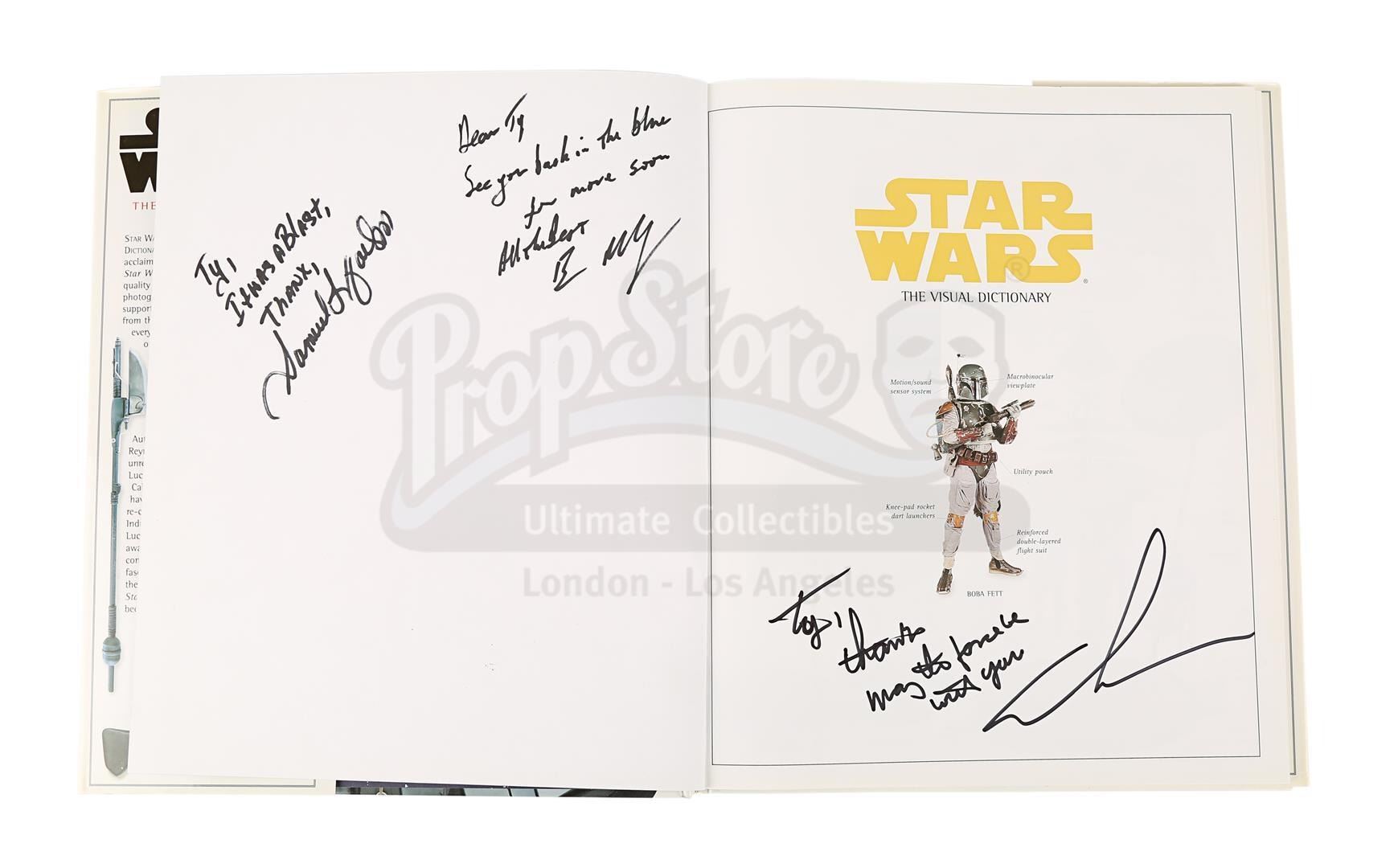 A copy of Star Wars: The Visual Dictionary autographed by three main cast members of George Lucas' Star Wars prequel trilogy. Written by David West Reynolds, the hardcover book contains 64 pages featuring annotated colour images and comprehensive insights into the characters, weapons and vehicles of the original trilogy.