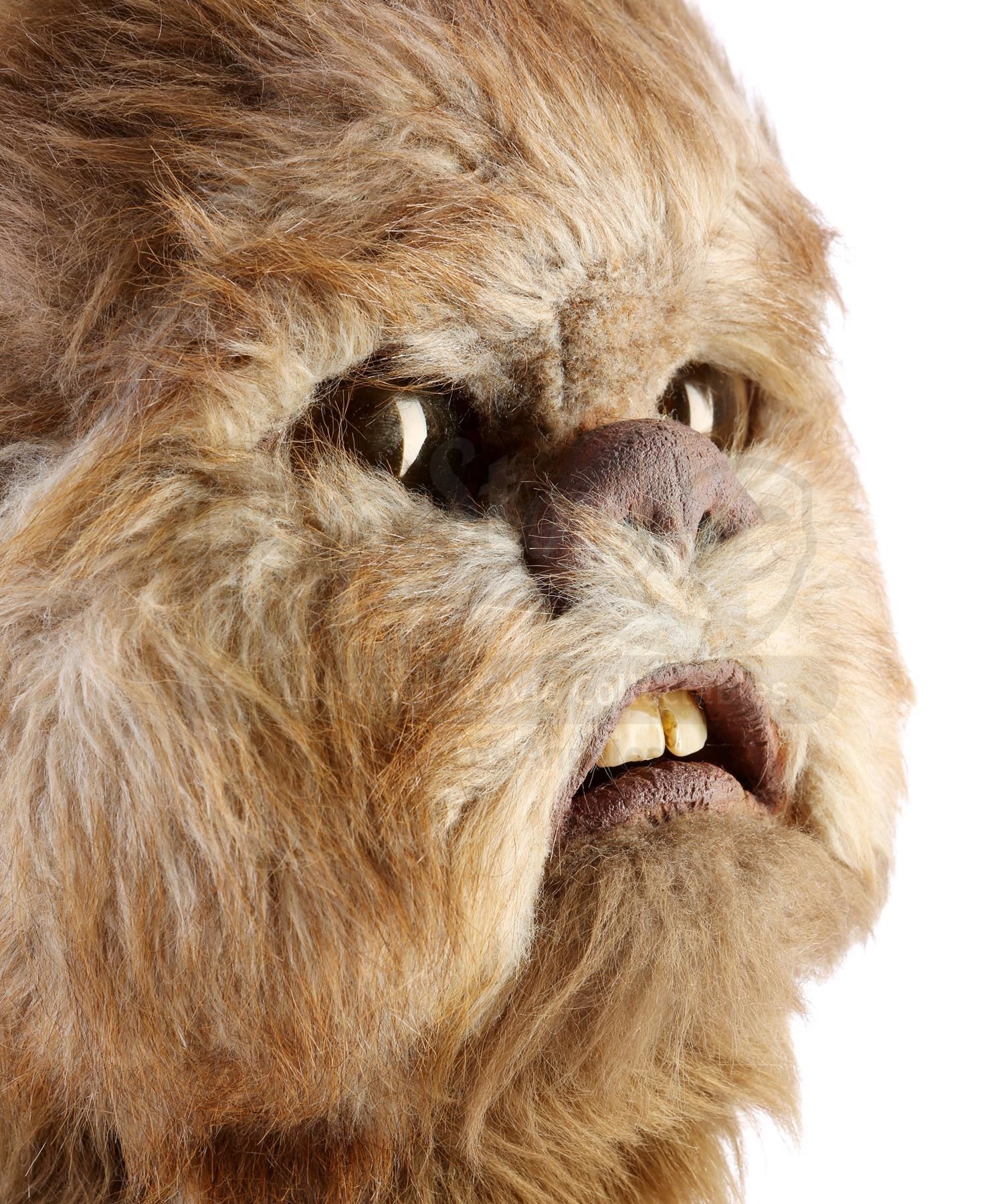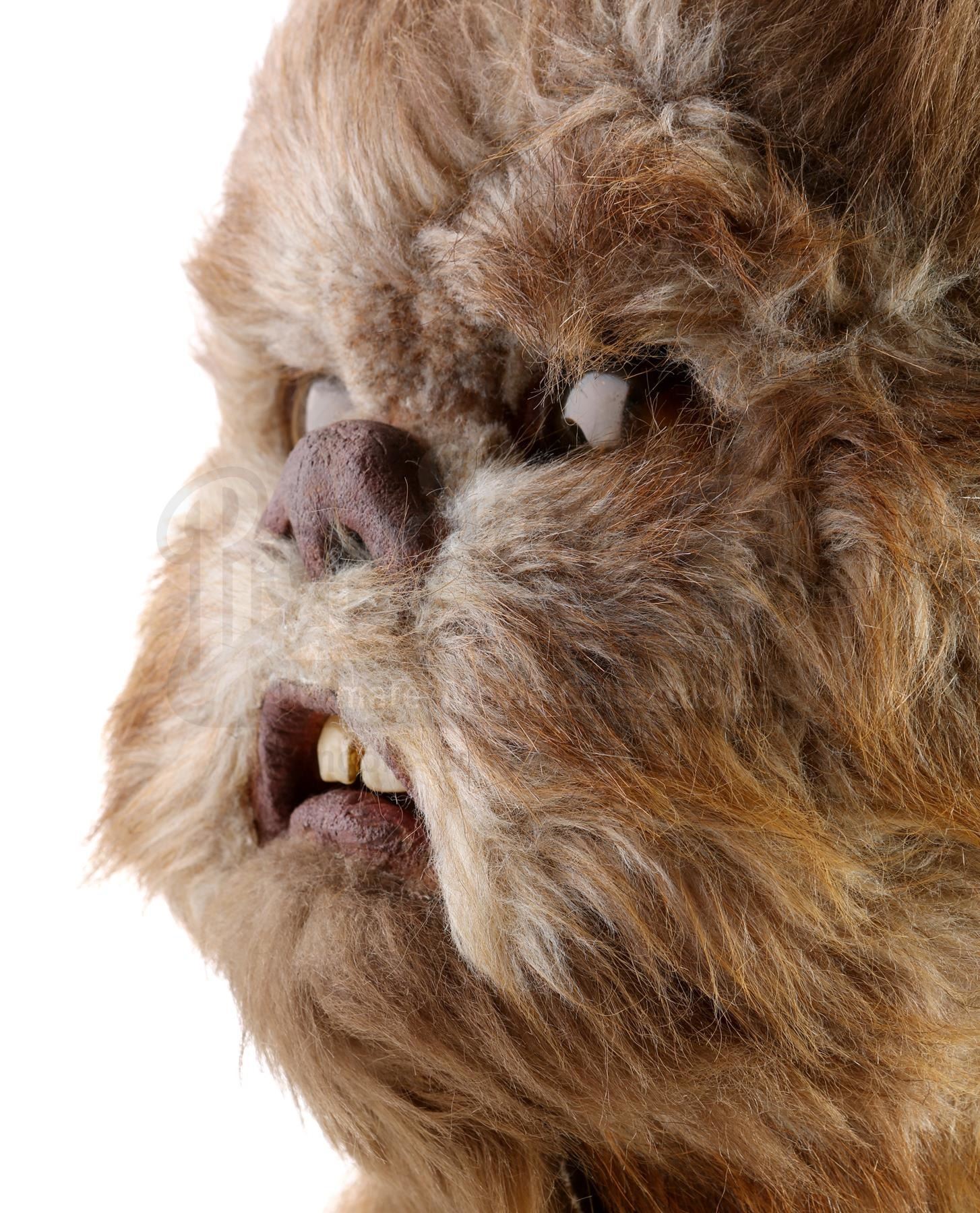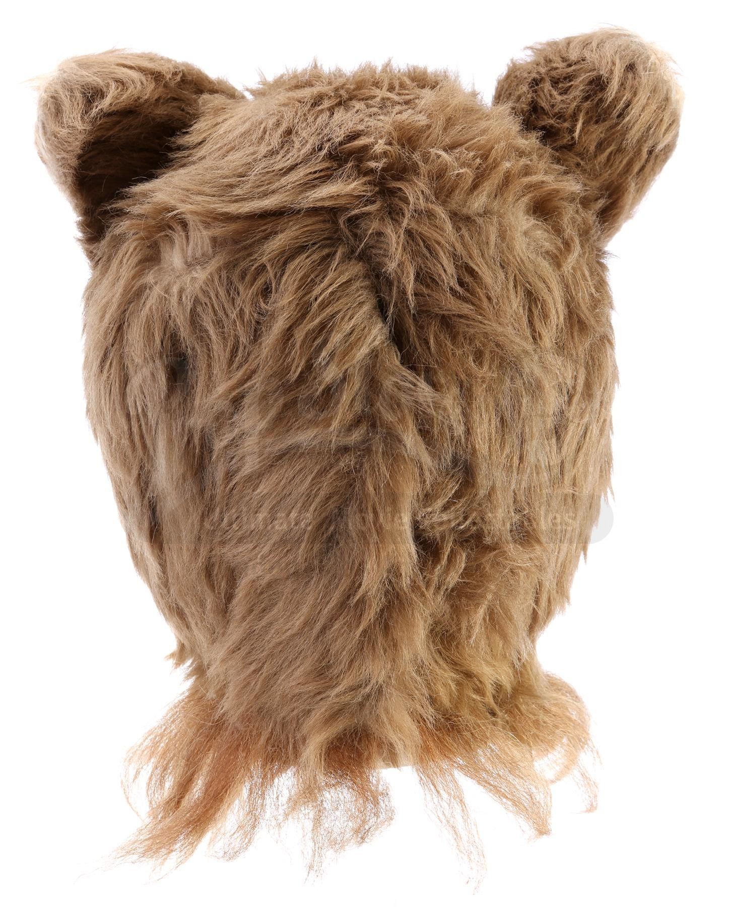 An Ewok (John Pedrick) mask from Richard Marquand's Star Wars: Return of the Jedi. Ewoks helped the Rebel Alliance defeat the Galactic Empire during the climactic battle on the forest moon of Endor. This mask, part of a background Ewok costume worn by Pedrick, was designed by makeup artist Stuart Freeborn, who with Phil Tippett was nominated for a BAFTA for his work on the film.