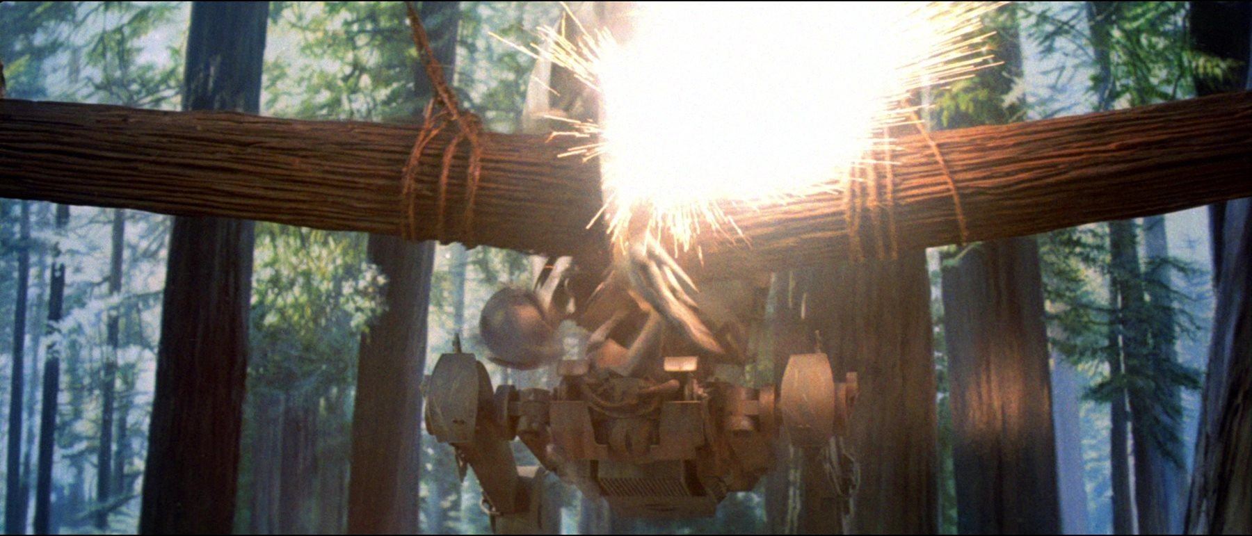 A model miniature Ewok log, used for smashing an Imperial AT-ST, from Richard Marquand’s Star Wars: Return of the Jedi. Ewoks used a pair of tree trunks rigged as a trap to pummel a formidable AT-ST during the battle of Endor.